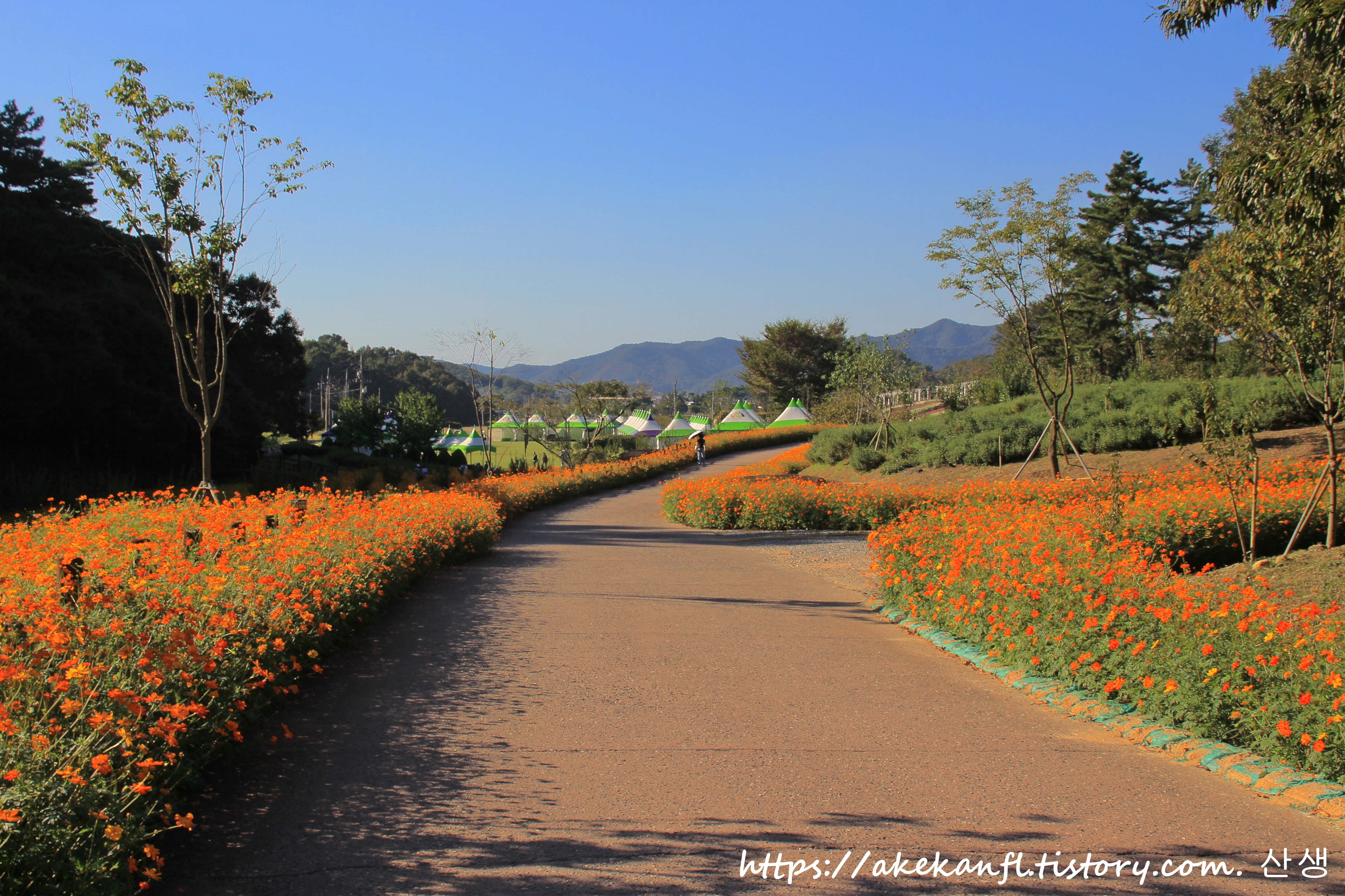 축제장 쪽의 멋진 꽃길을 당겨 담고....