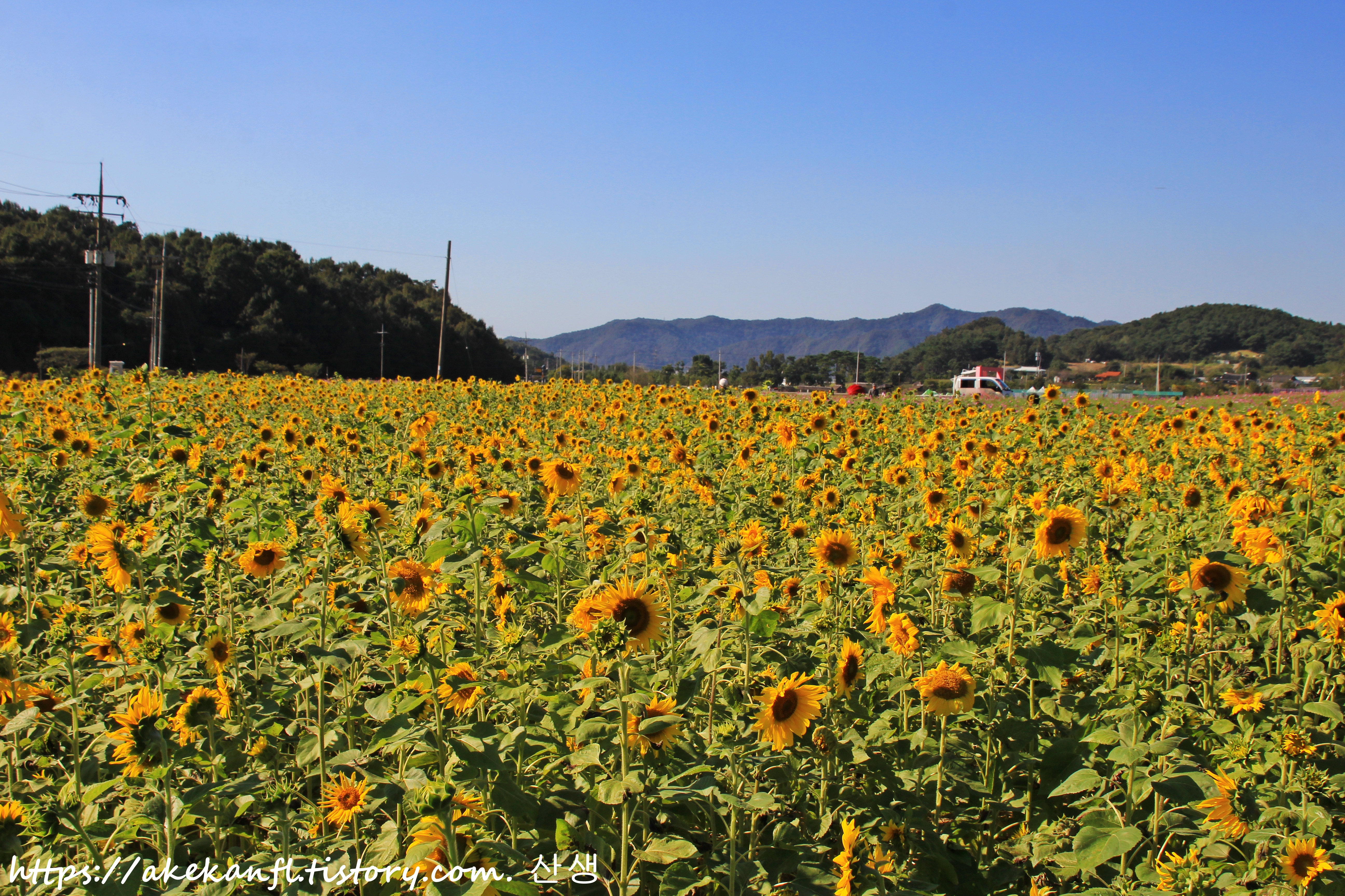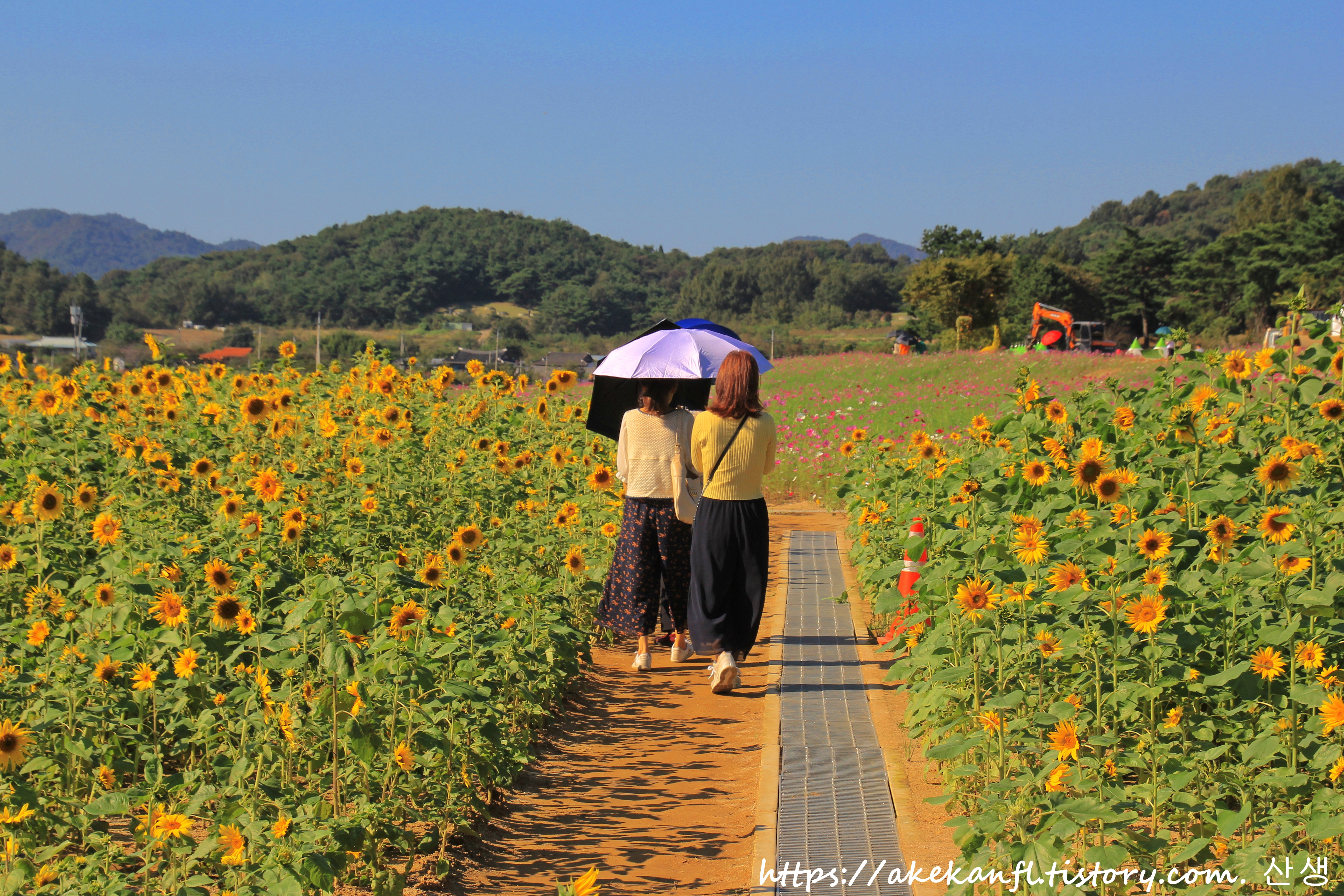 드디어 넓은 해바라기 꽃밭에 도착한다
