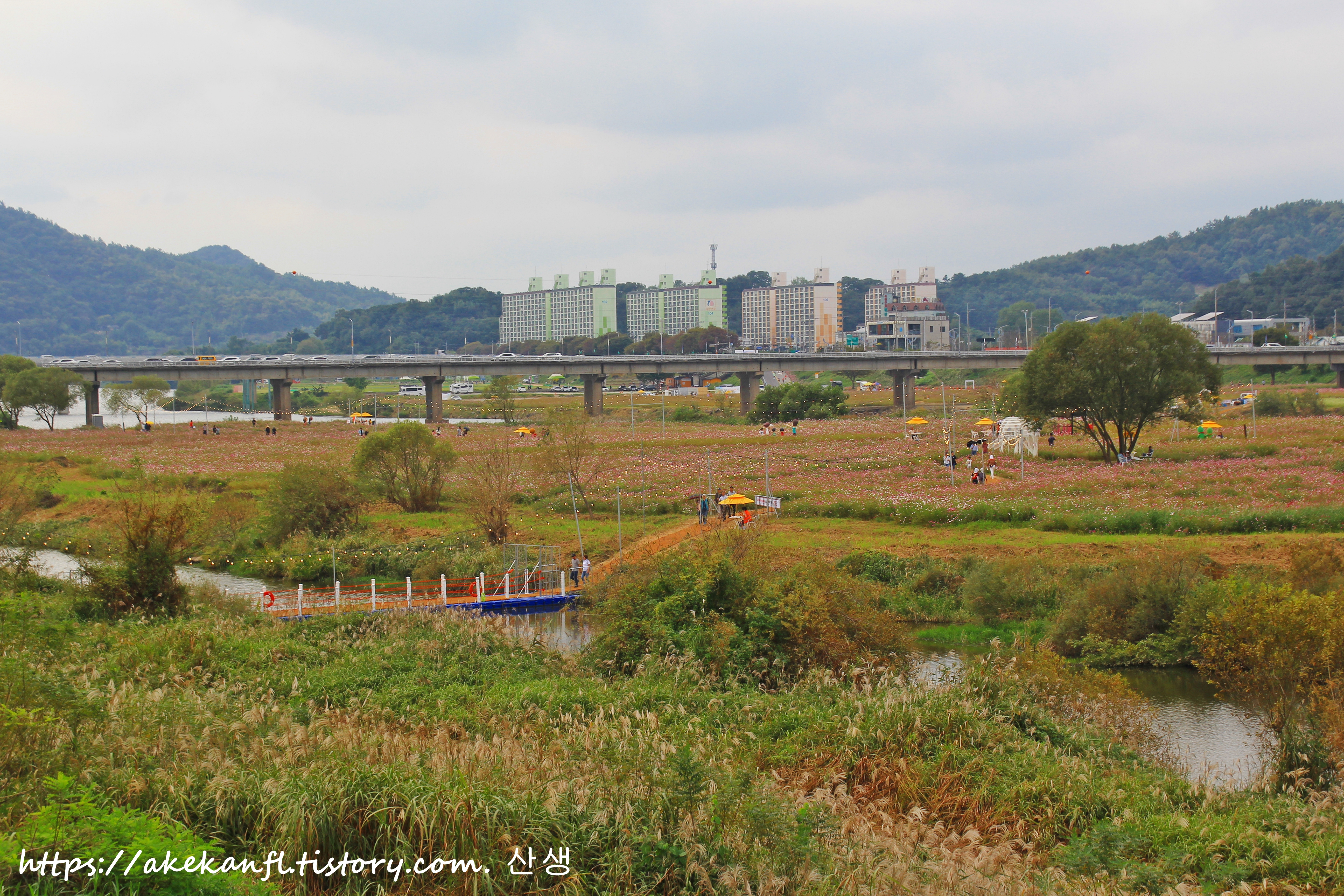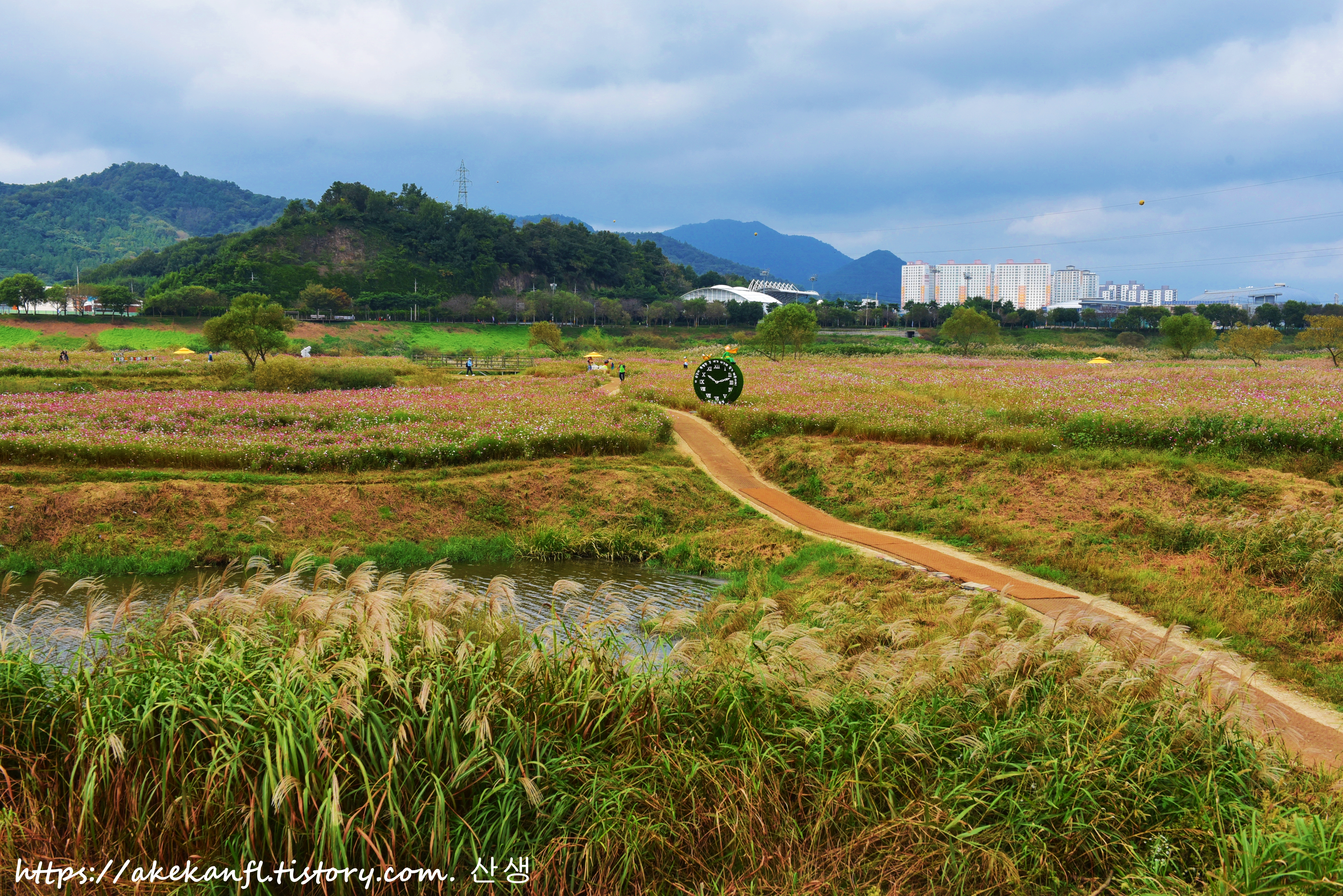 체육공원과 들섬 꽃밭을 당겨 담아봄