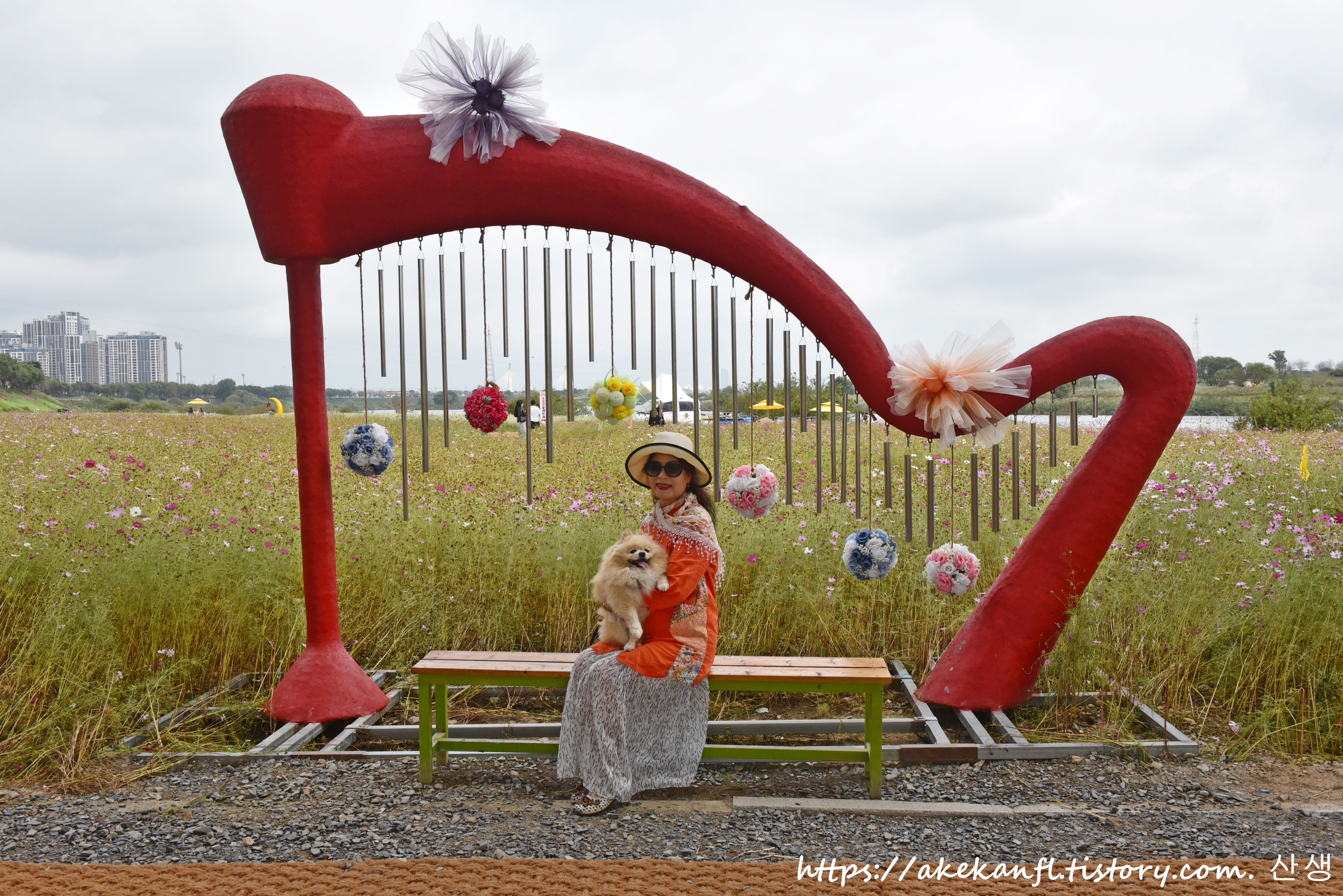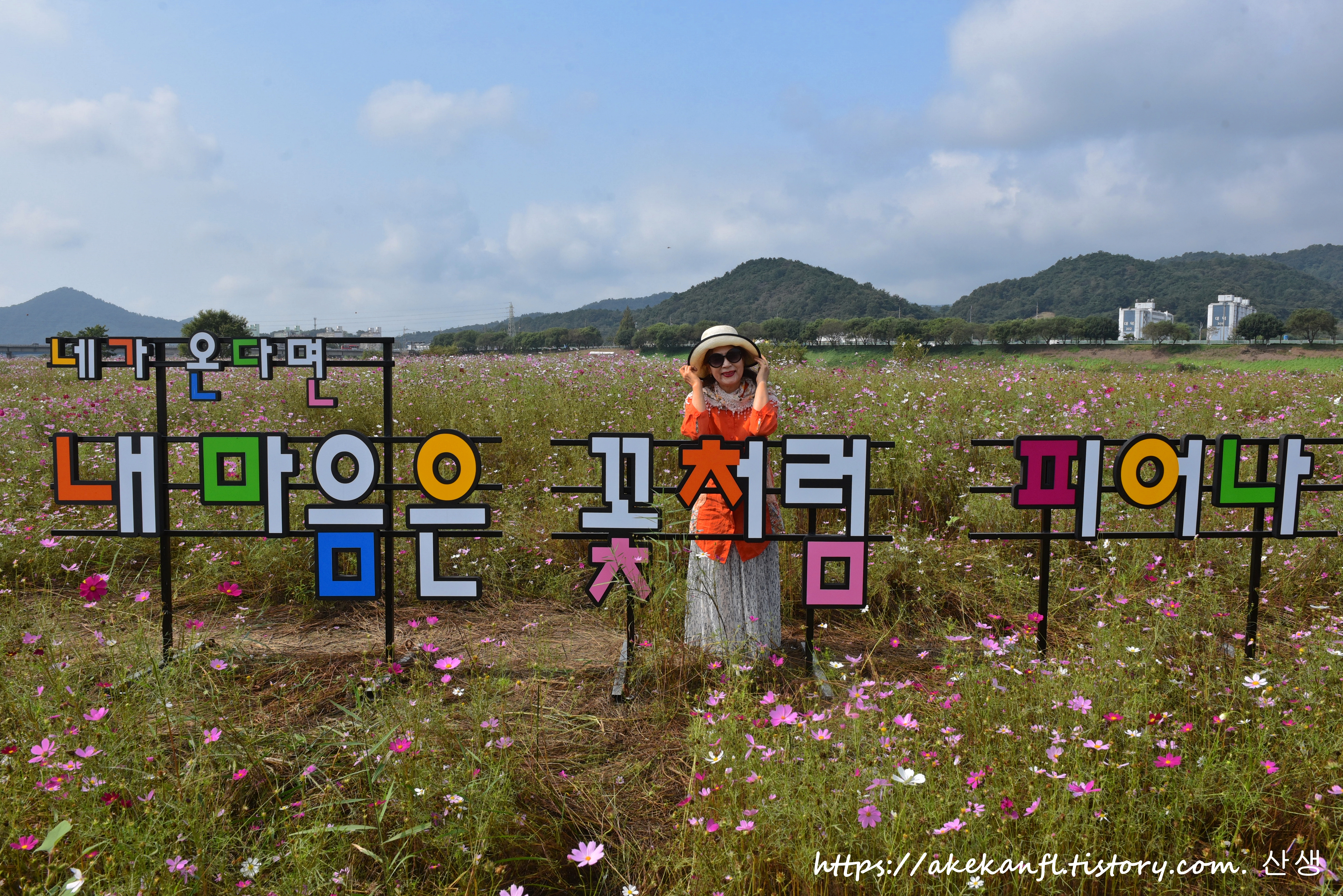 체육공원 꽃밭의 포토존에서....