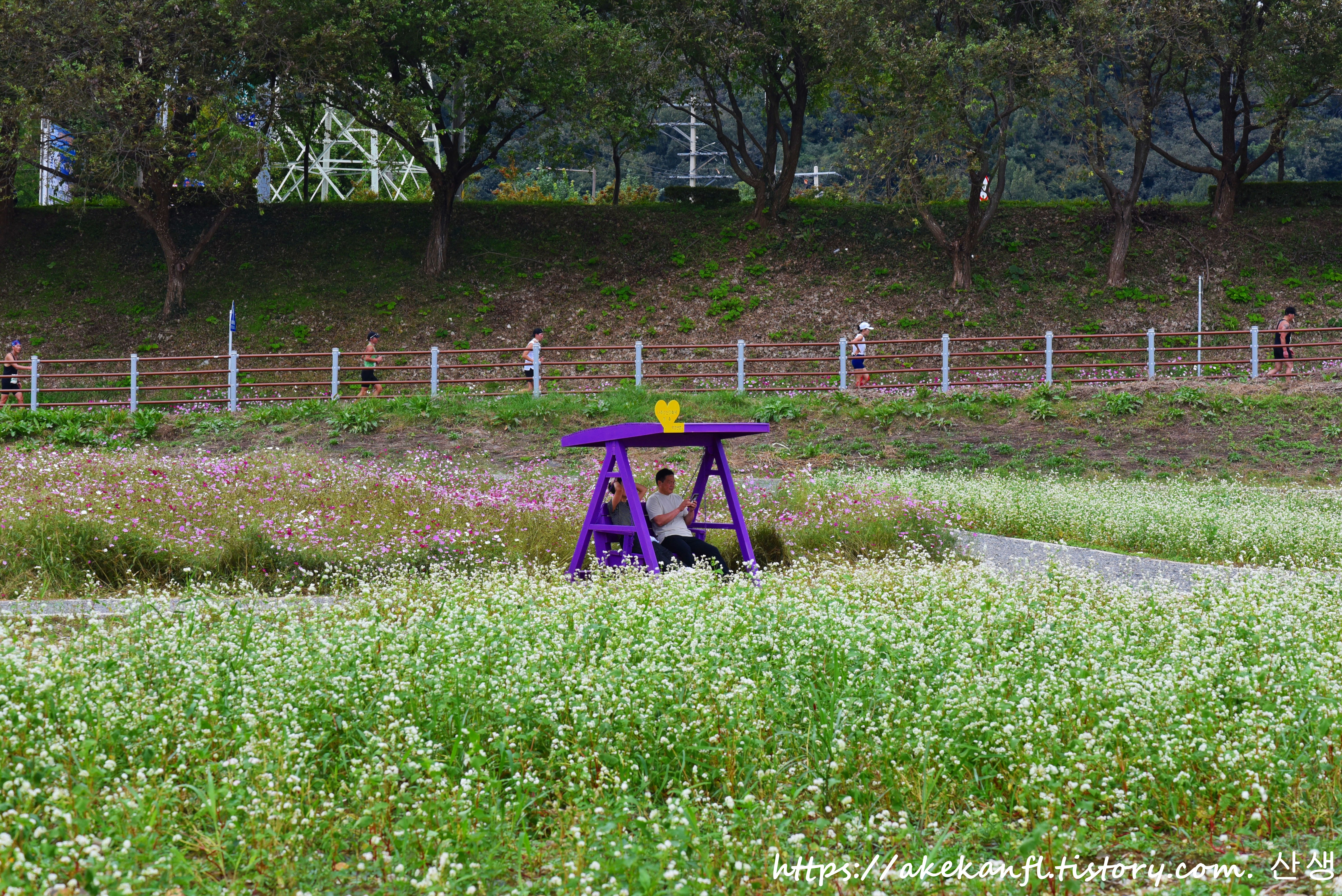 멀리 보랏빛 쉼터 쪽을 당겨 담고....