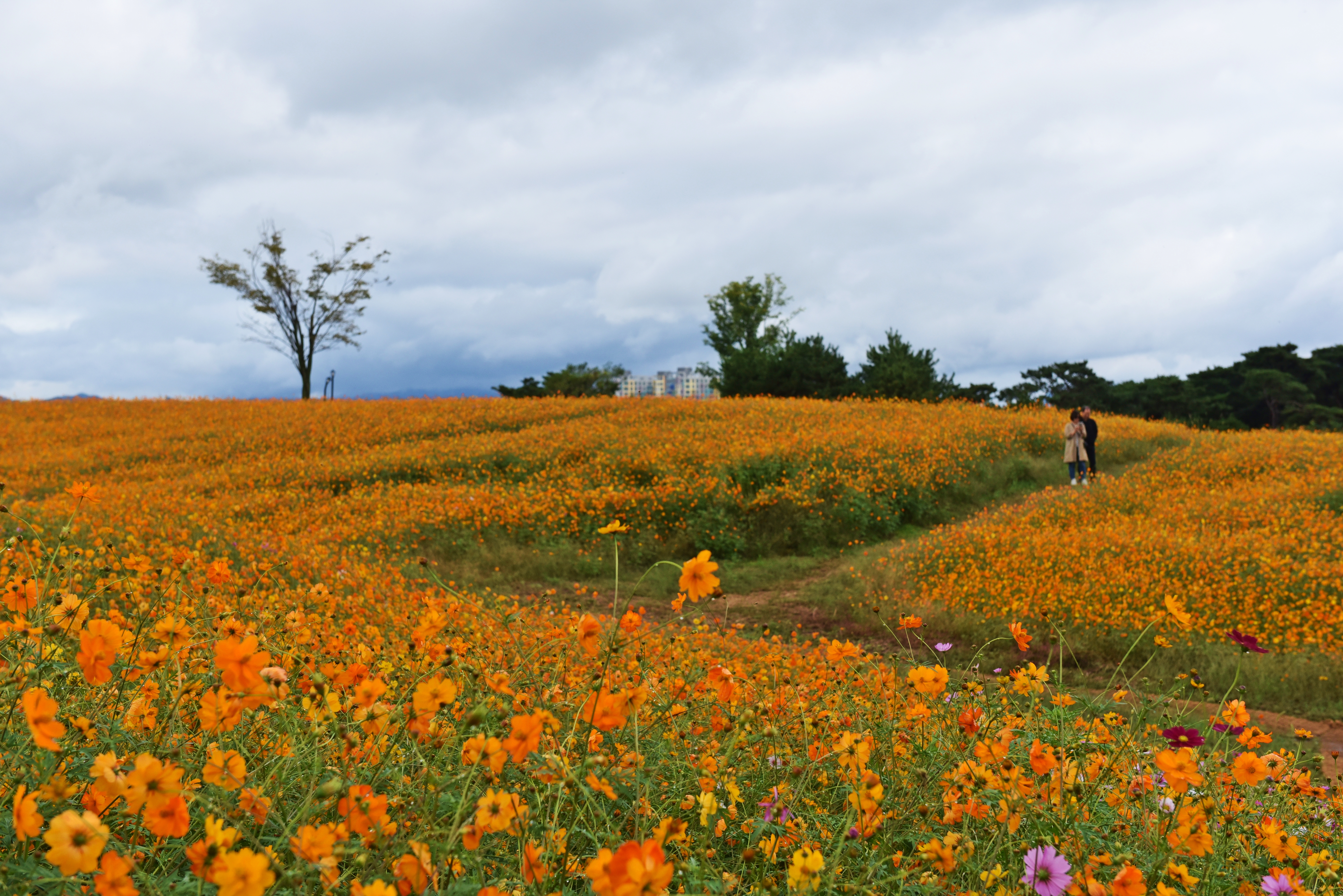 백일홍.메밀.황화코스모 꽃밭을 조성