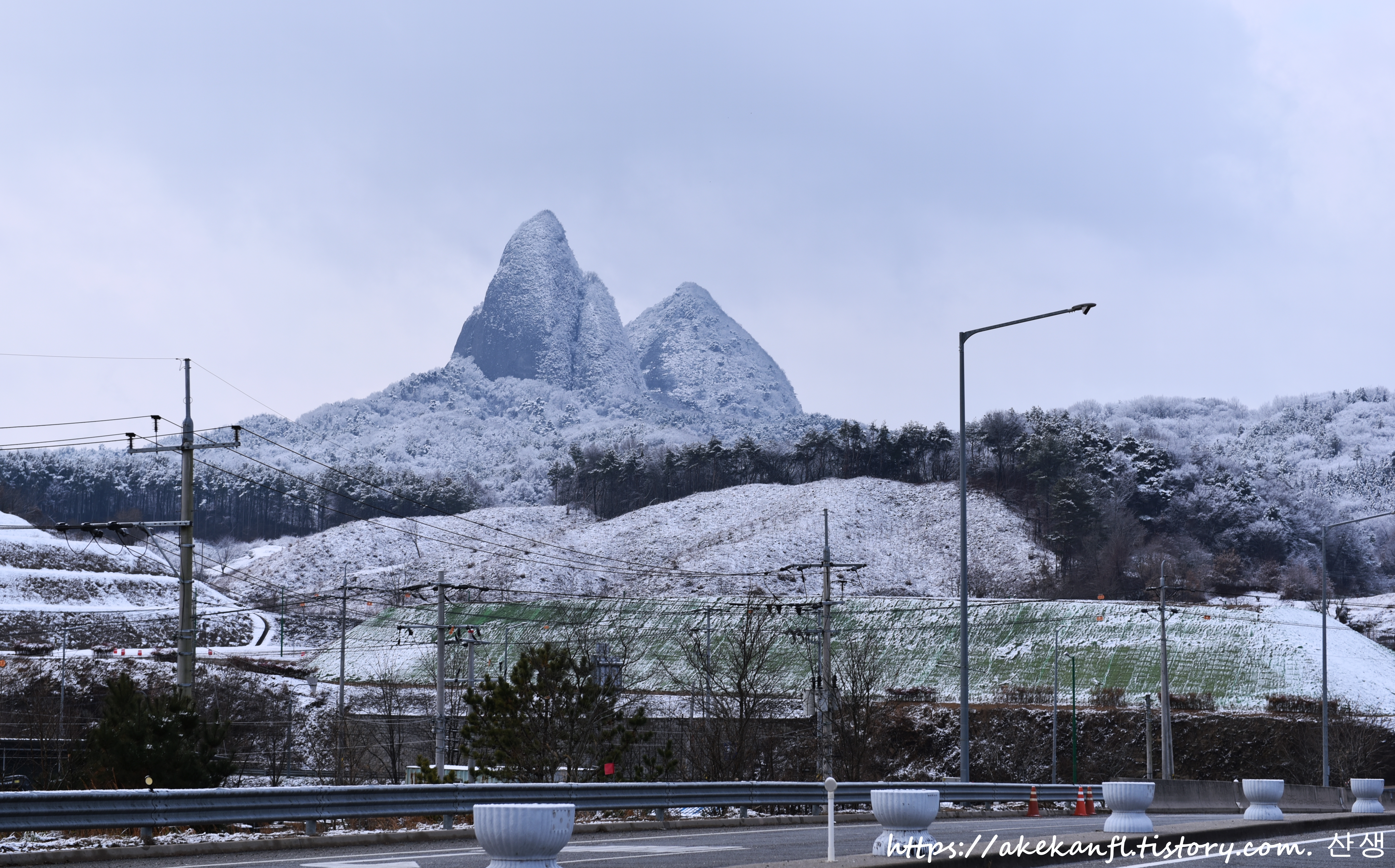 하얀 눈을 덮어쓰고 우뚝 서 있고,