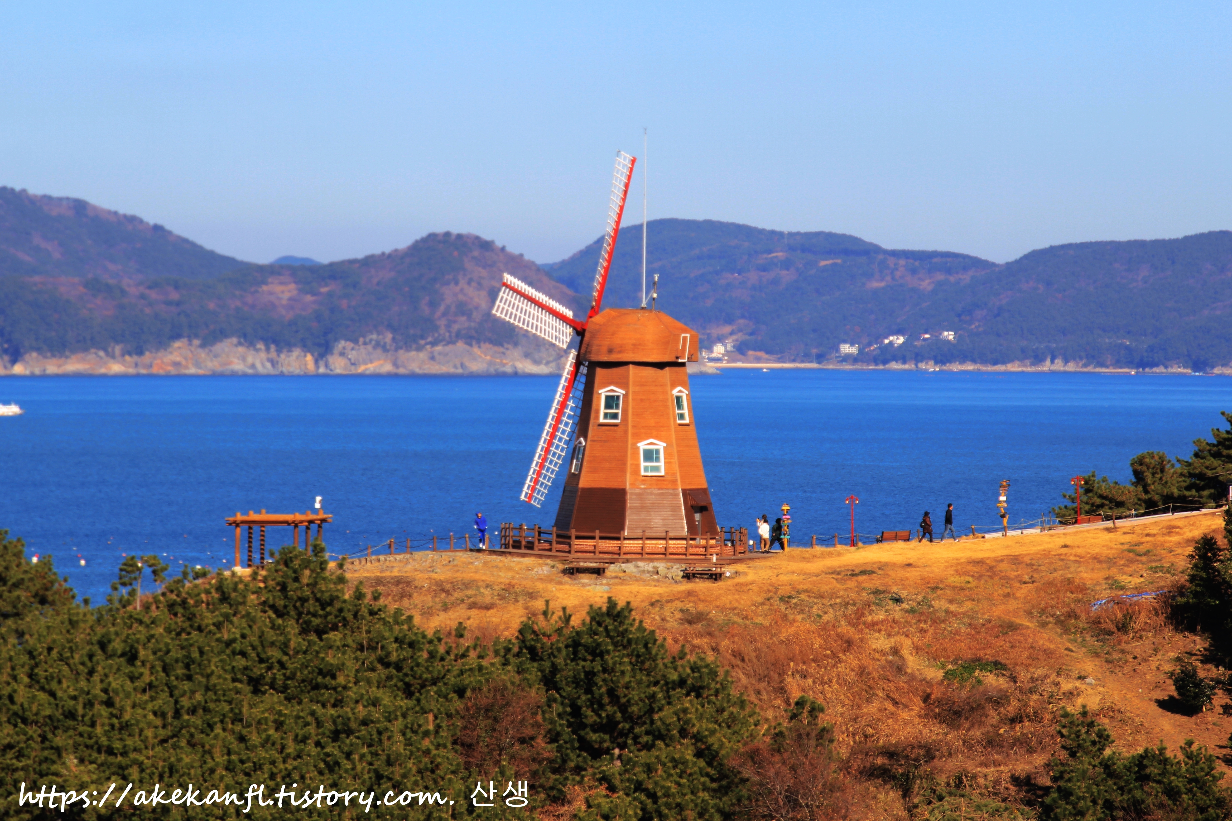 언덕 위에 자리한 풍차는 이국적인 분위기를 더한다.