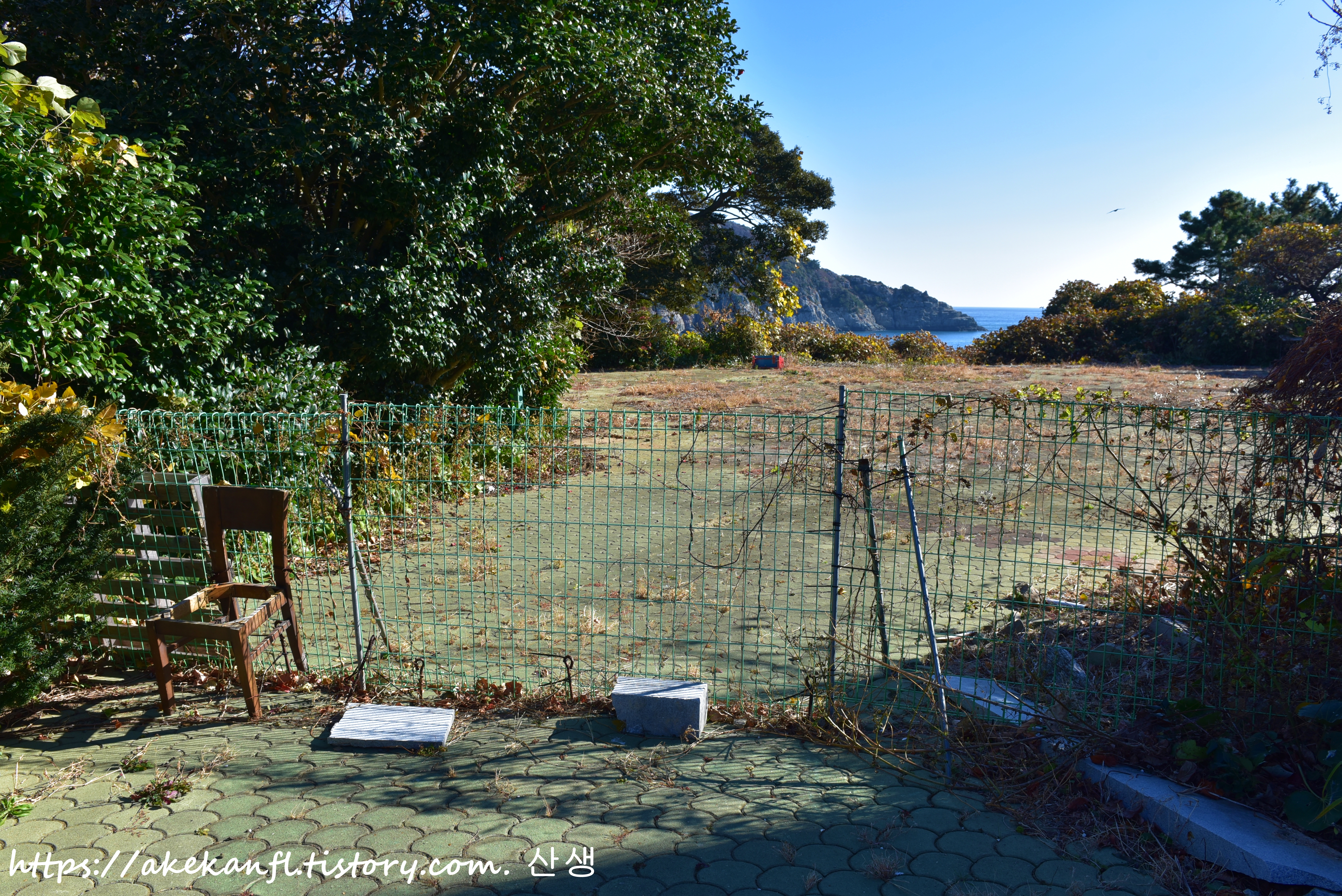옛 해금강 호텔 뒤뜰에 도착하니