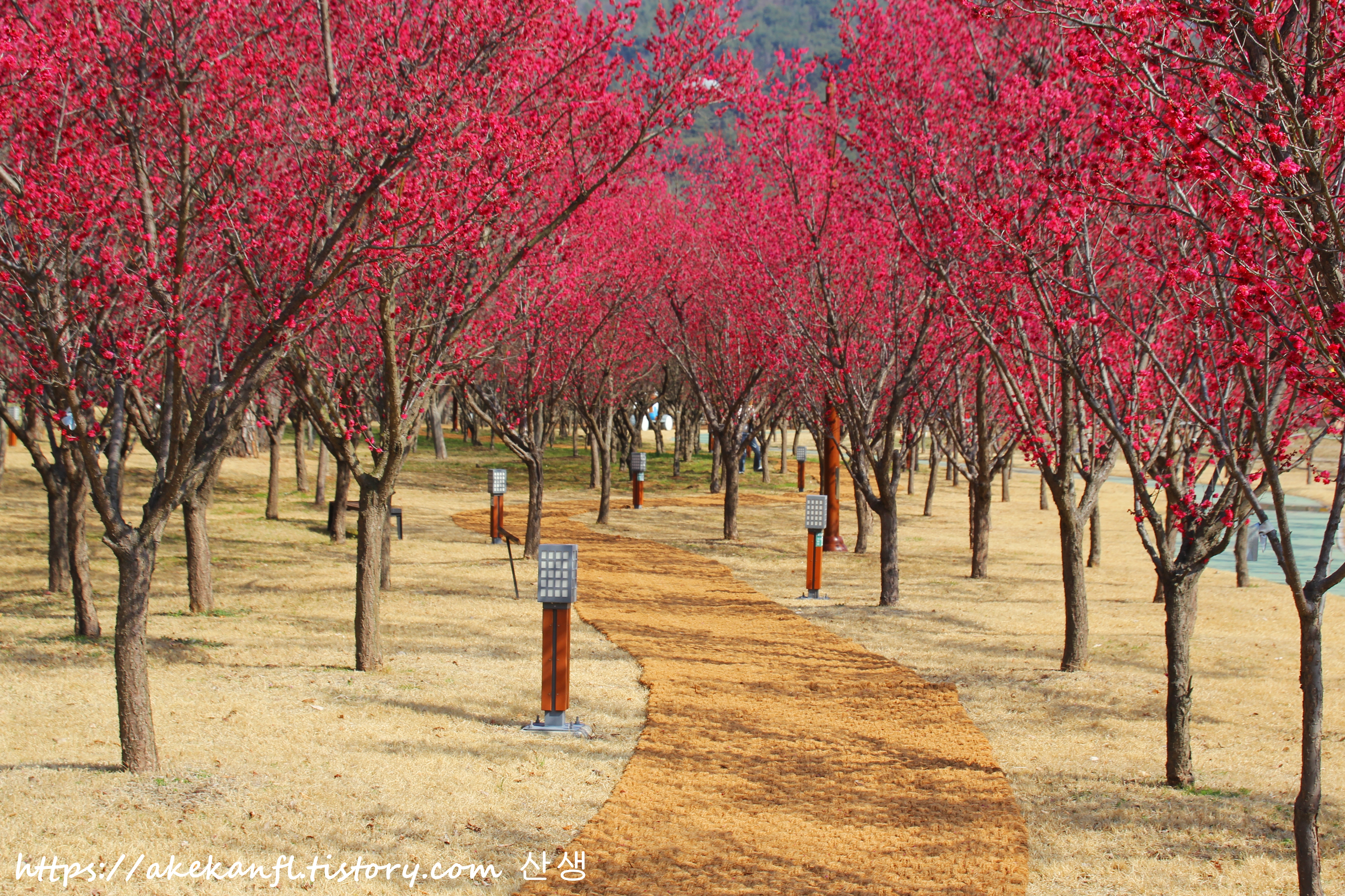 공원 곳곳에 홍매화 꽃길을 조성