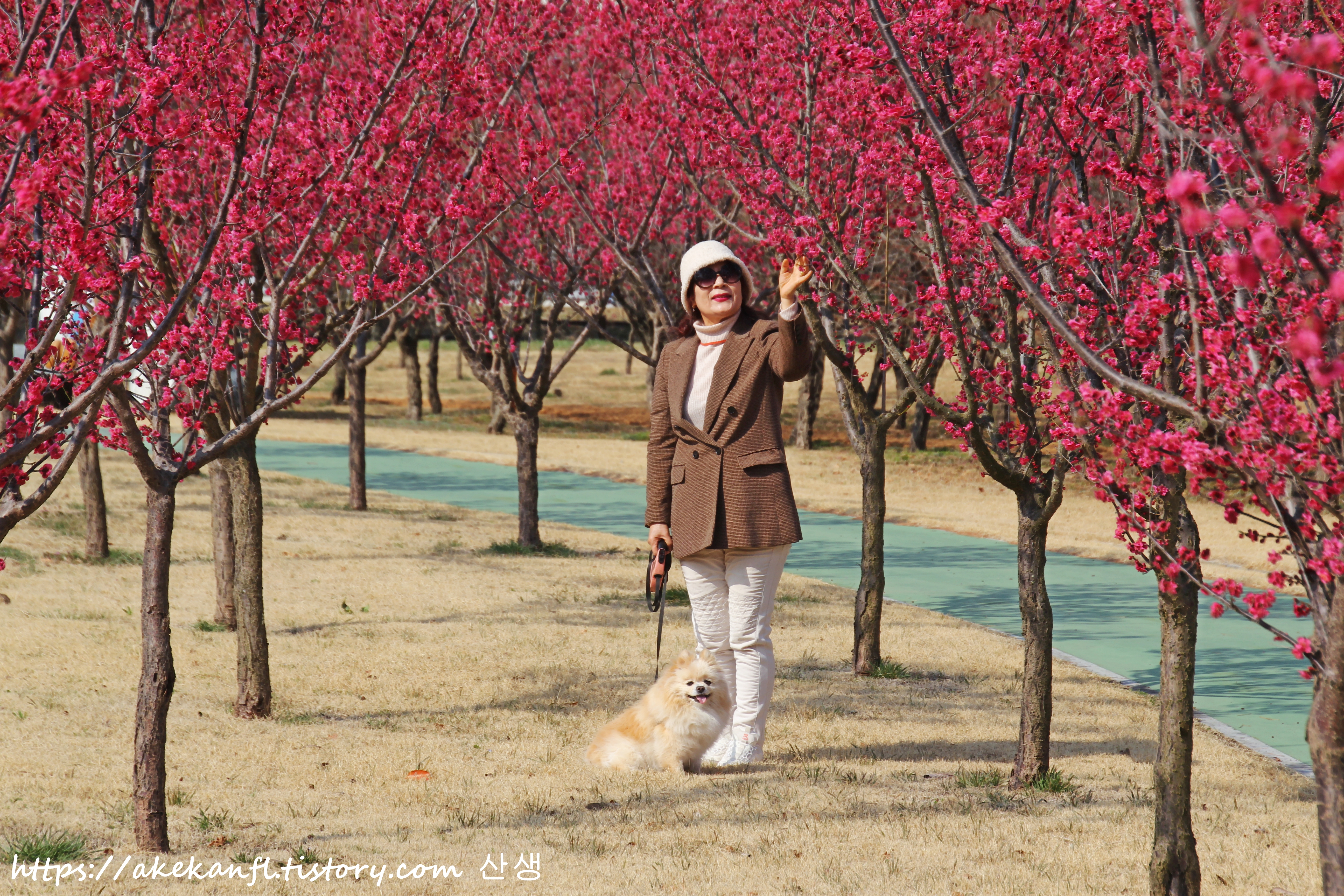 같은 장소에서 홍매 꽃길을 당겨봄