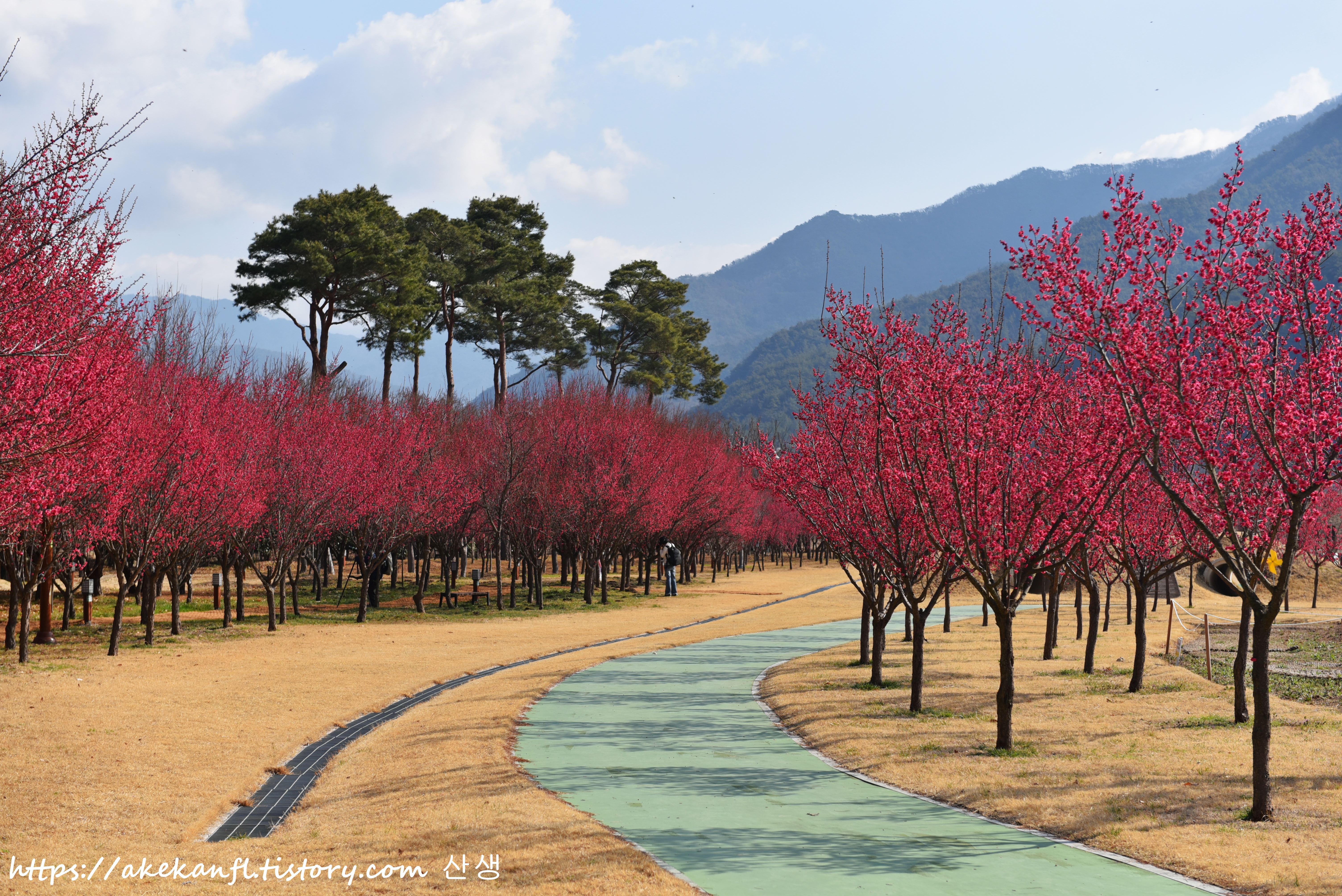 주차장 옆 홍매화 꽃길의 풍광