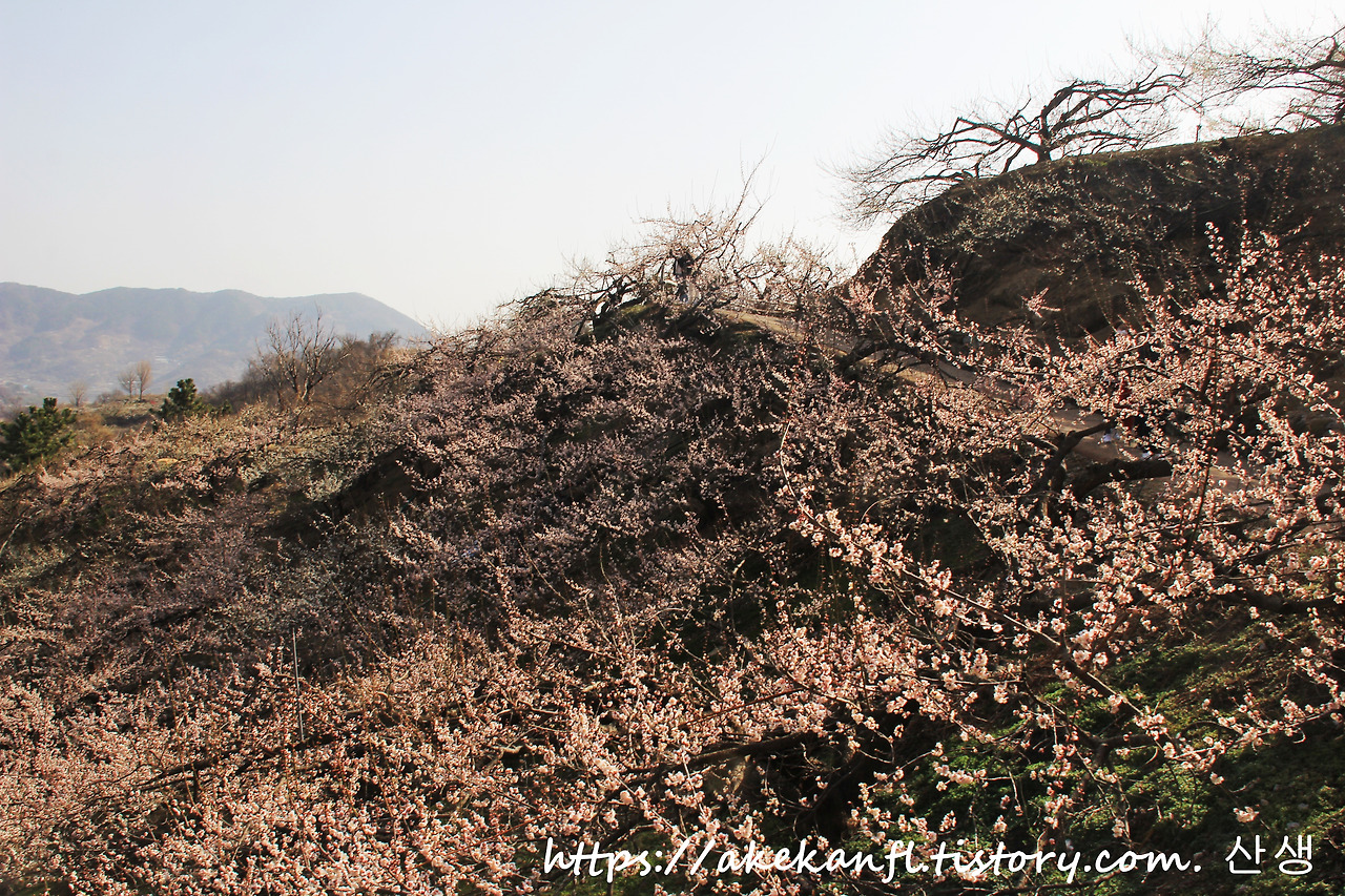 멀리 맞은편 언덕 쪽의 매화숲을 당겨봄