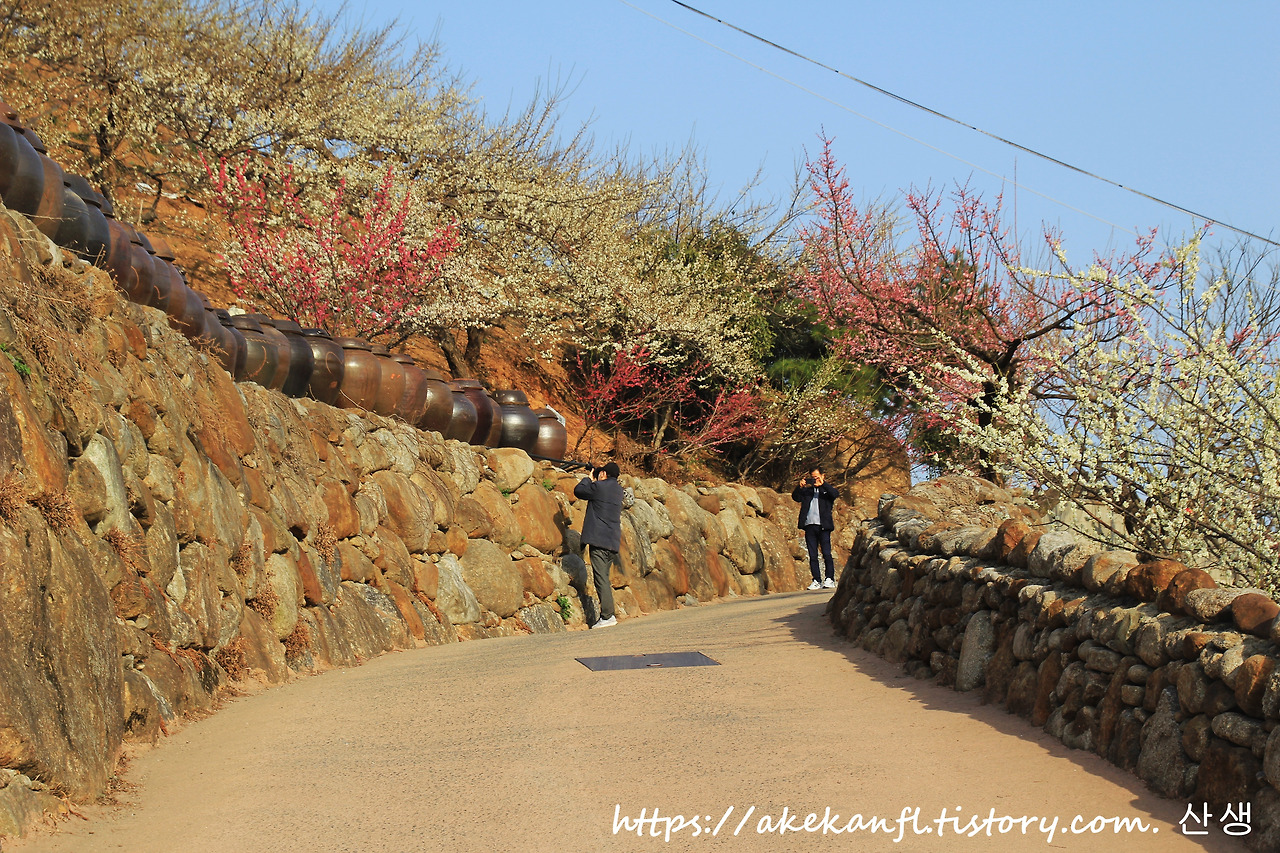 청매실농원의 장독대 담장 쪽의