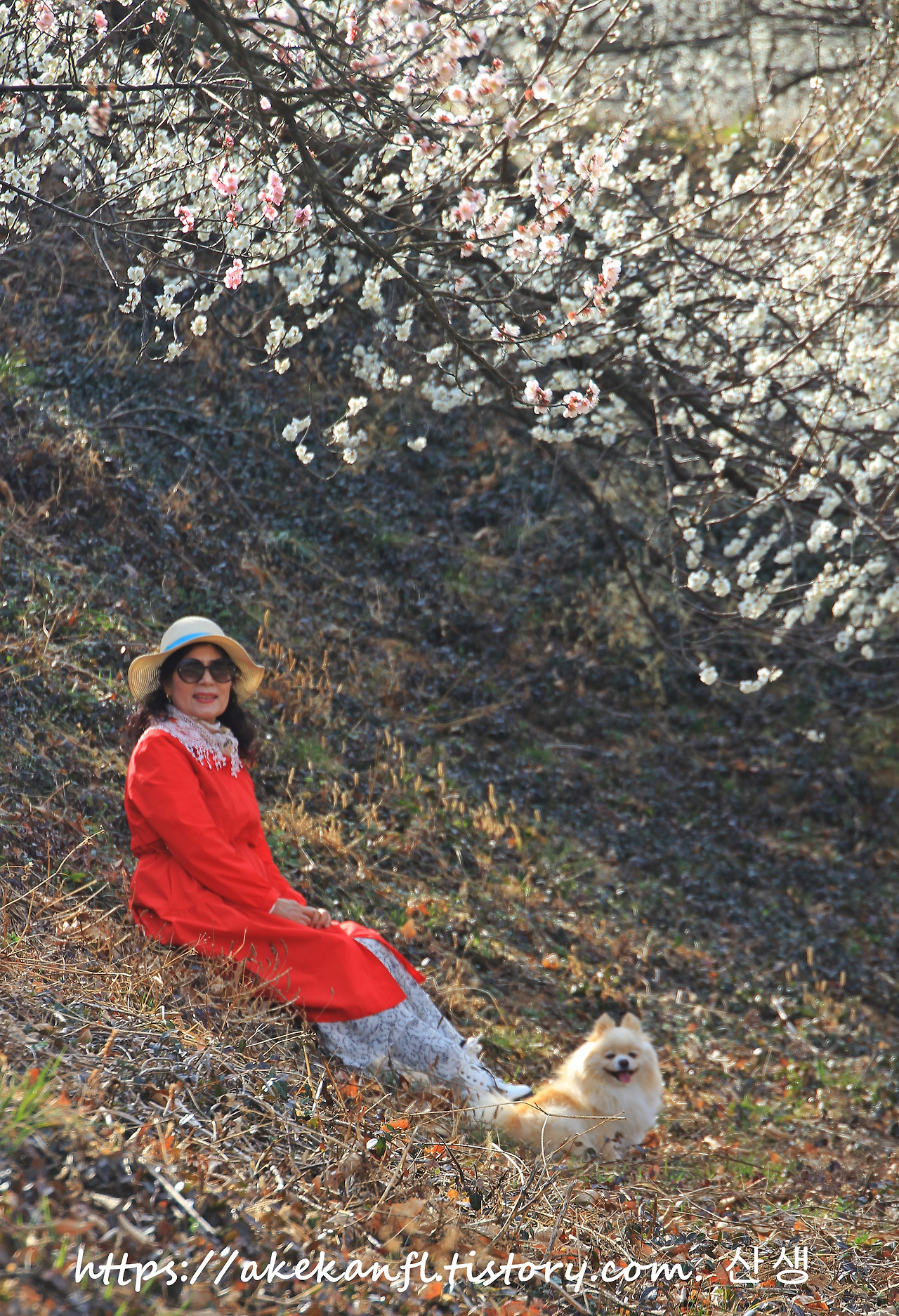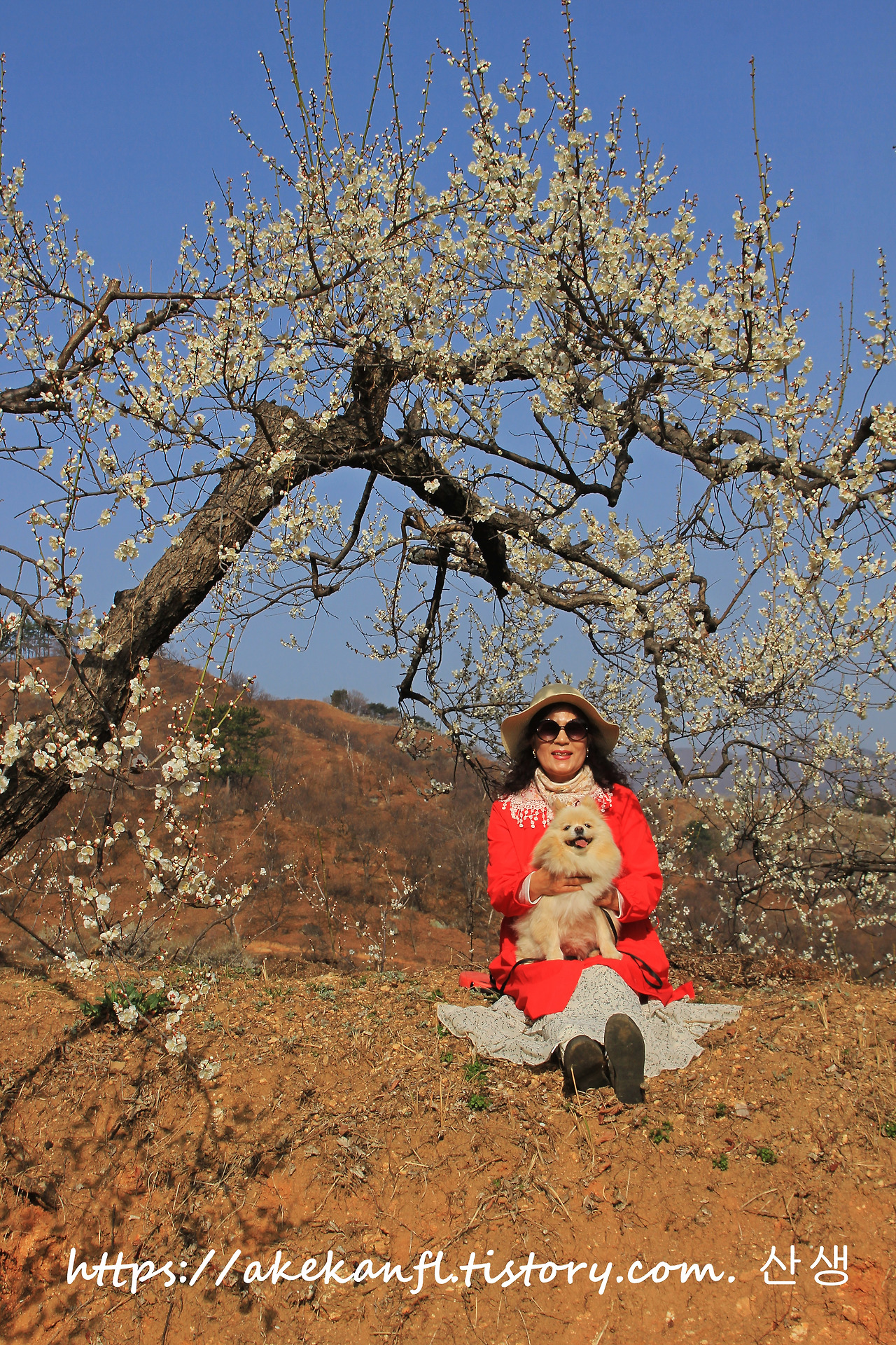 언덕의 눈부신 매화꽃 아래에서....