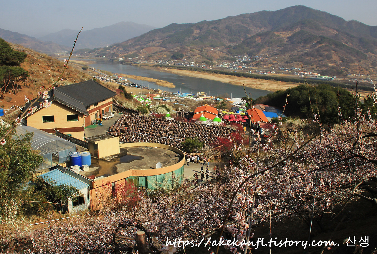 매화마을과 섬진강 쪽을 당겨 담아봄