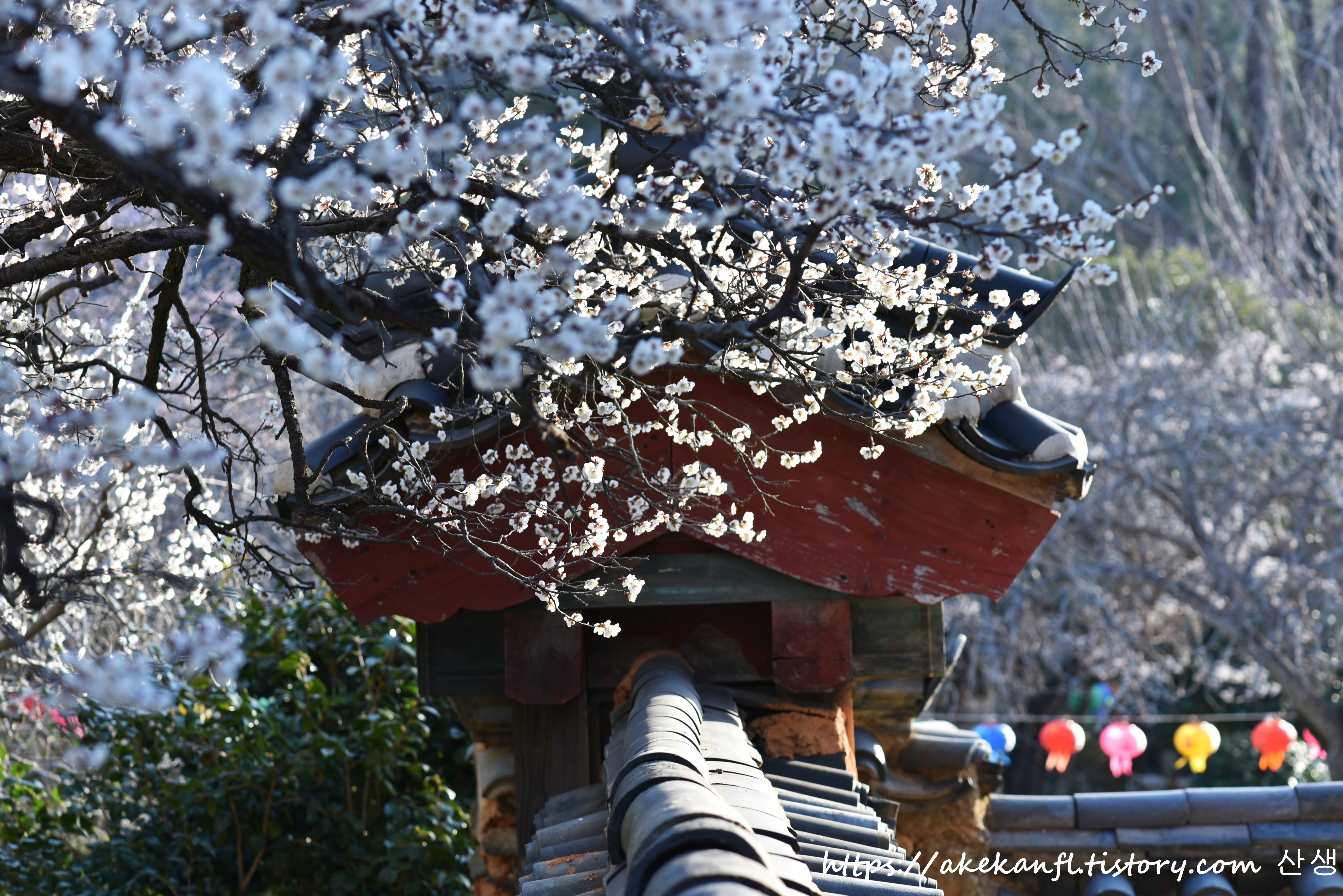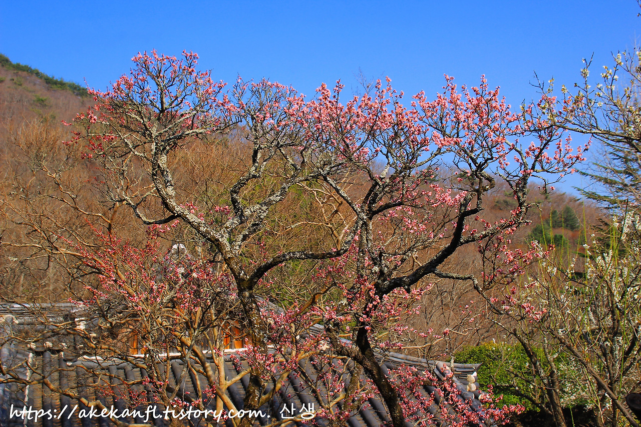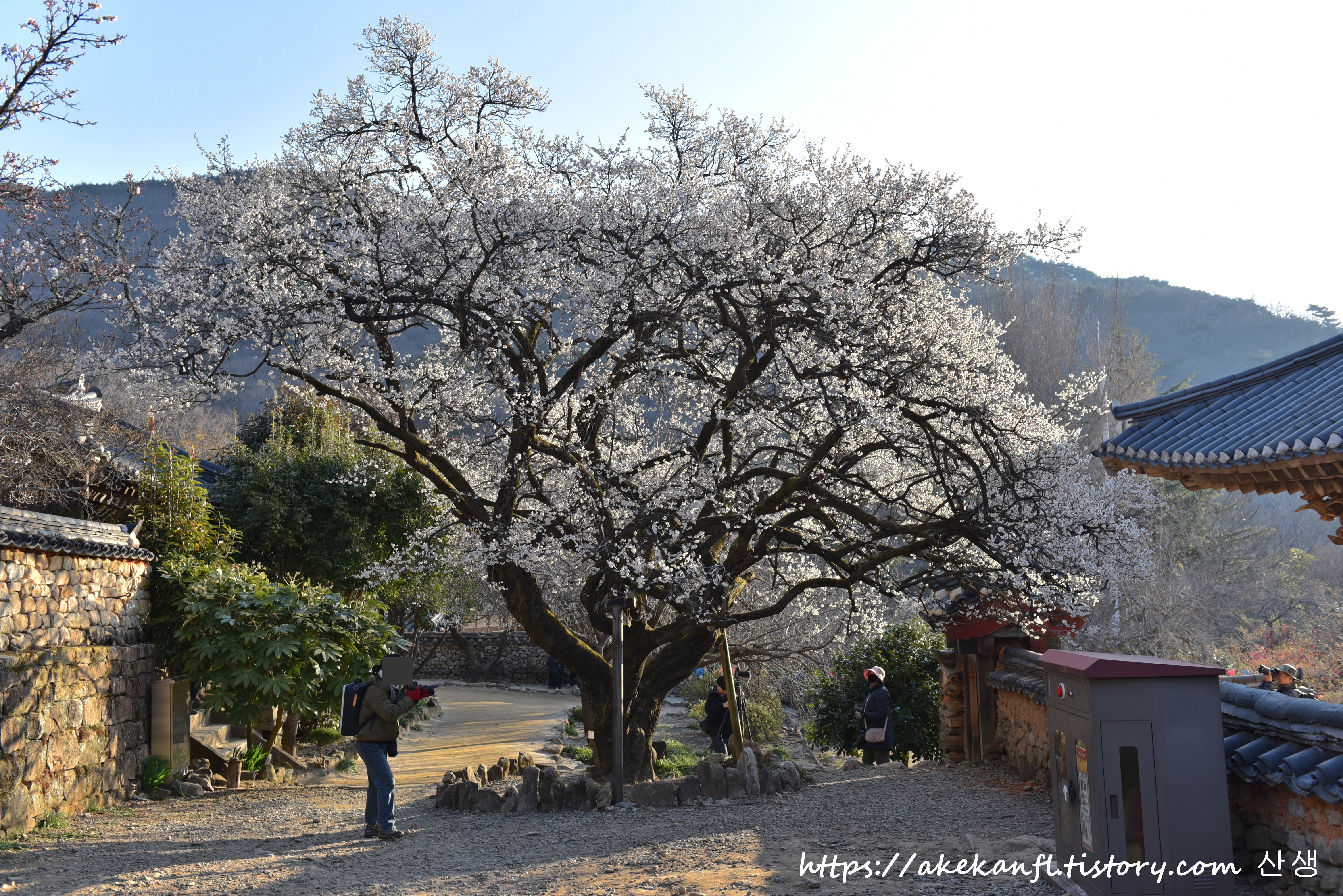 담장 너머로 꽃을 피운 매화를 당겨 담고....