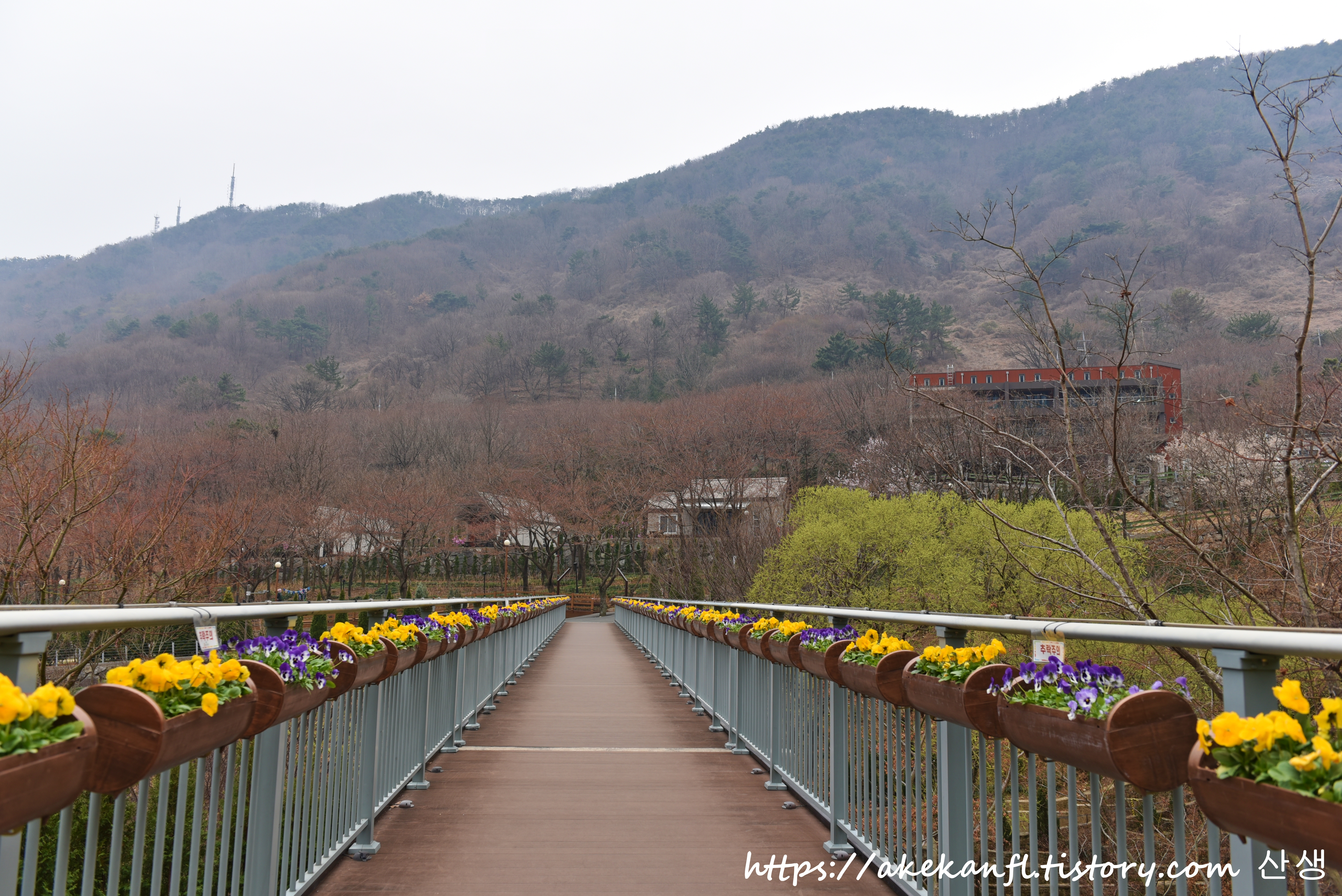 다리 밑에서 맞은편 꽃밭을 담아봄