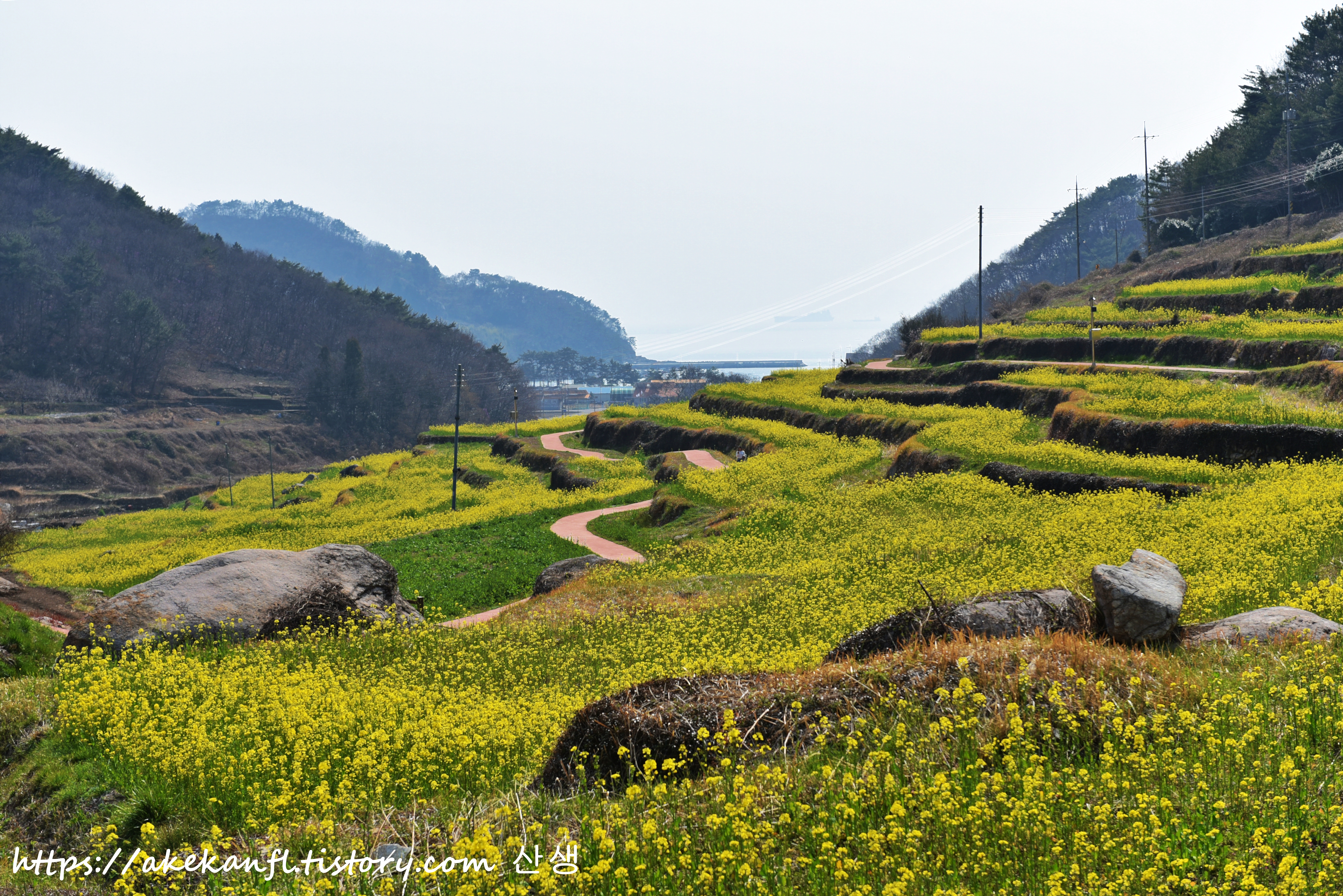 탐방로와 다랭이 유채꽃밭을 담고...