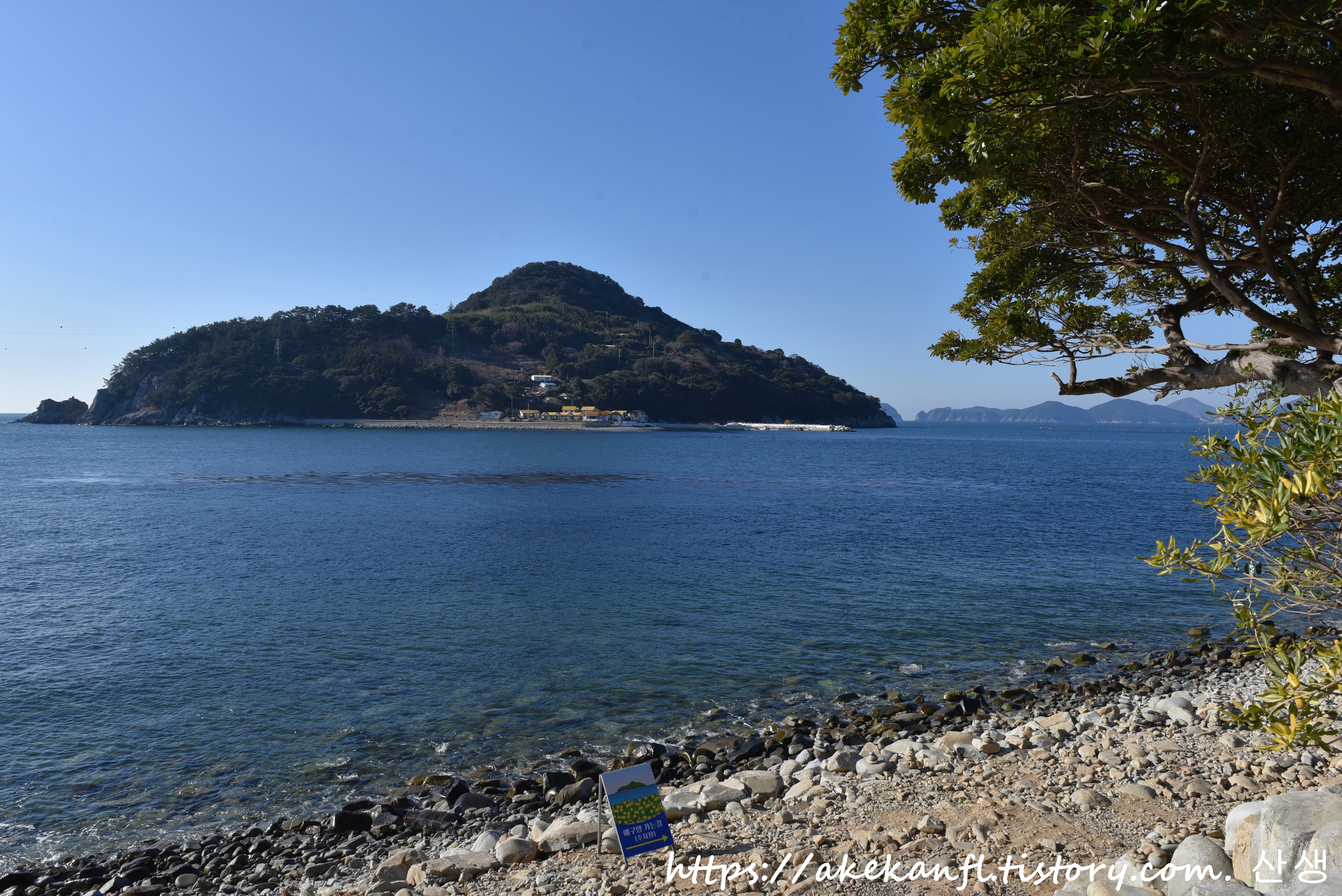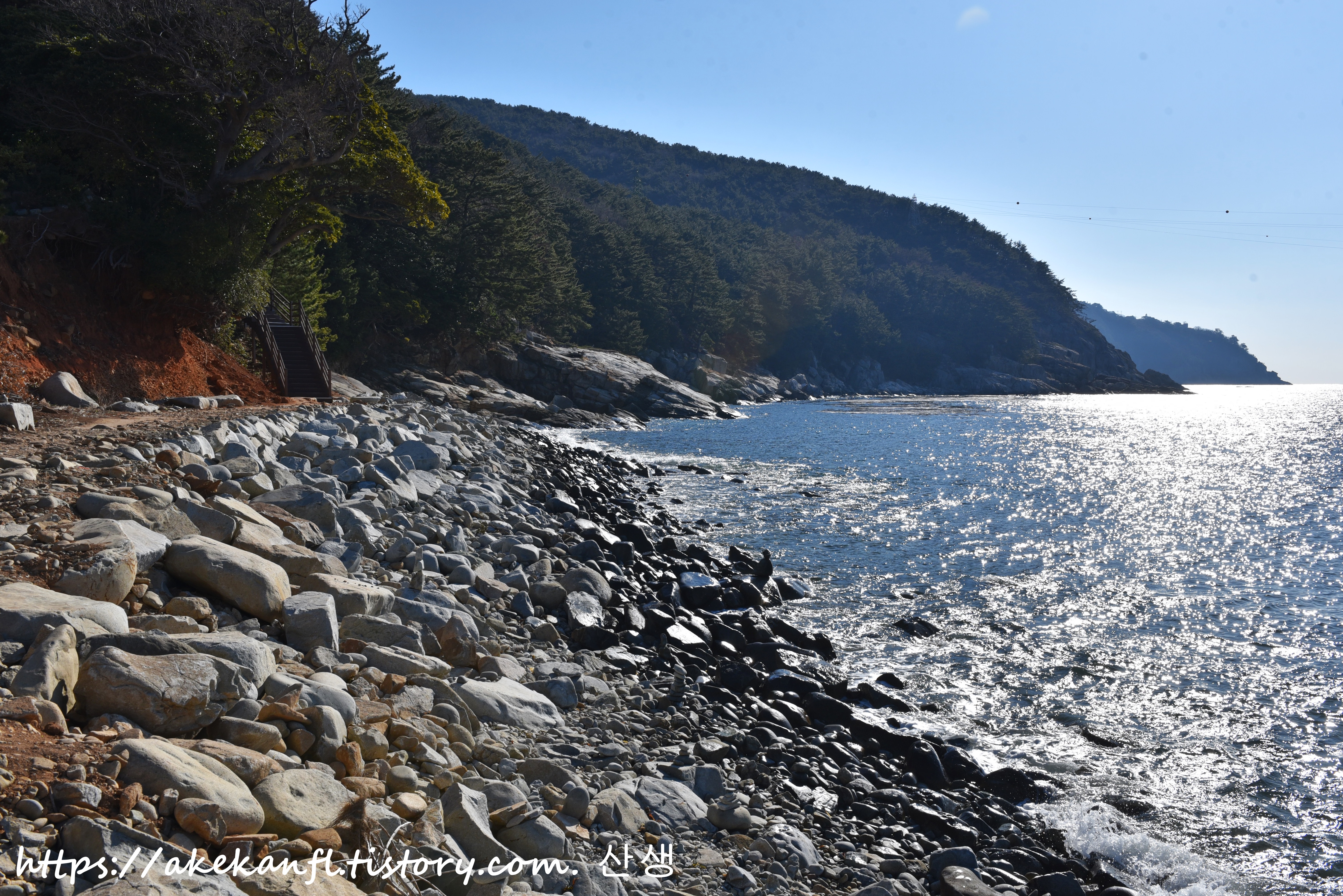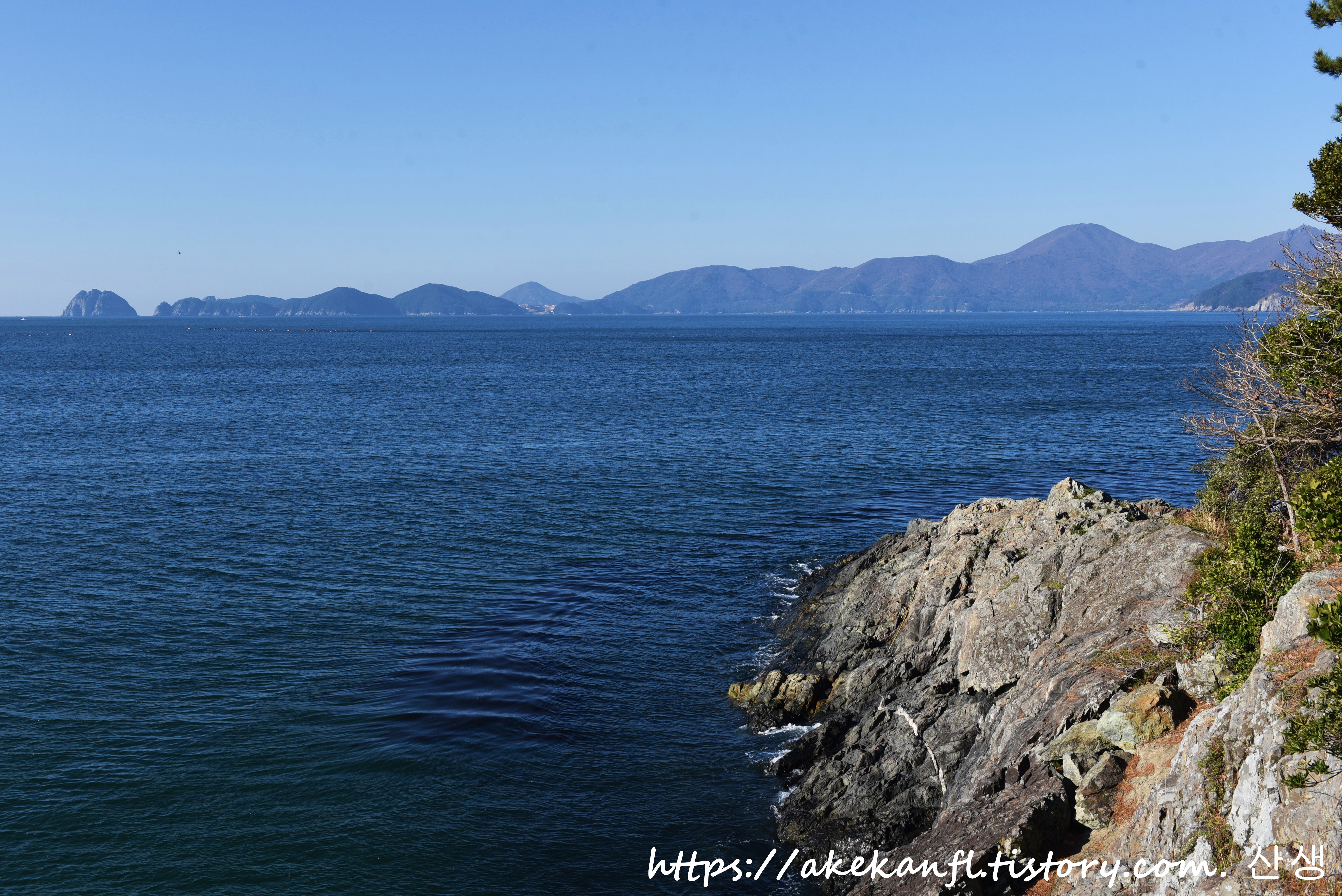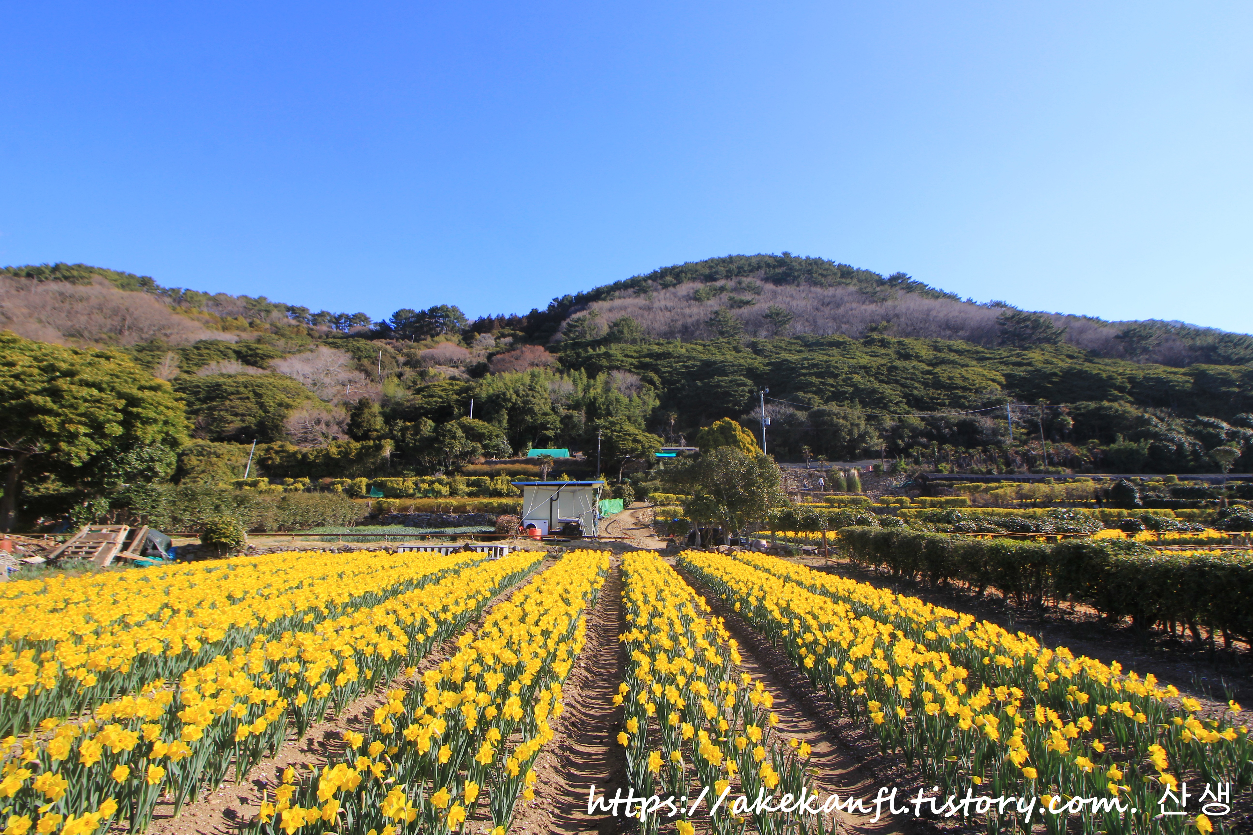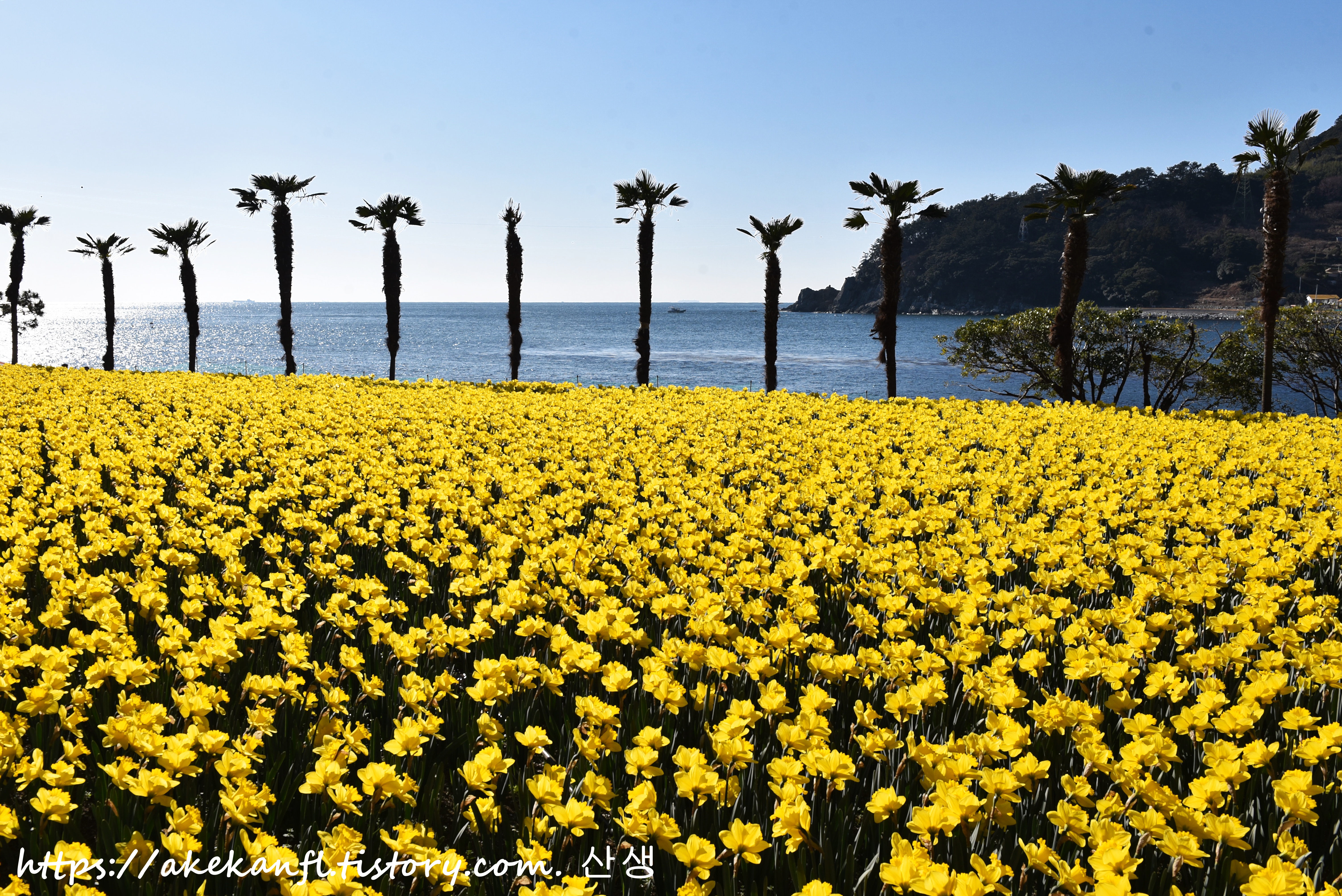 탐방로 해안 쪽의 수선화 꽃밭도 담고...