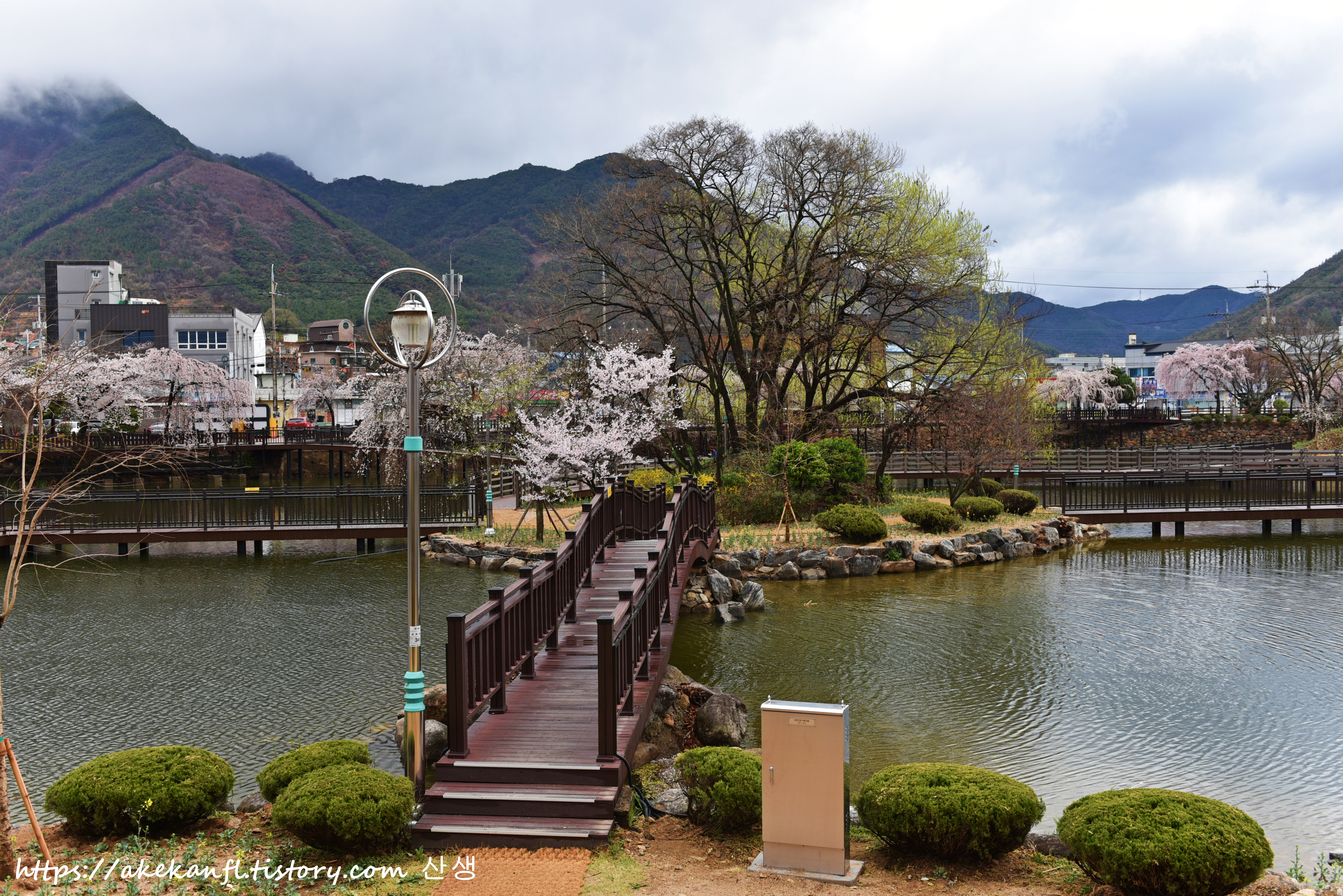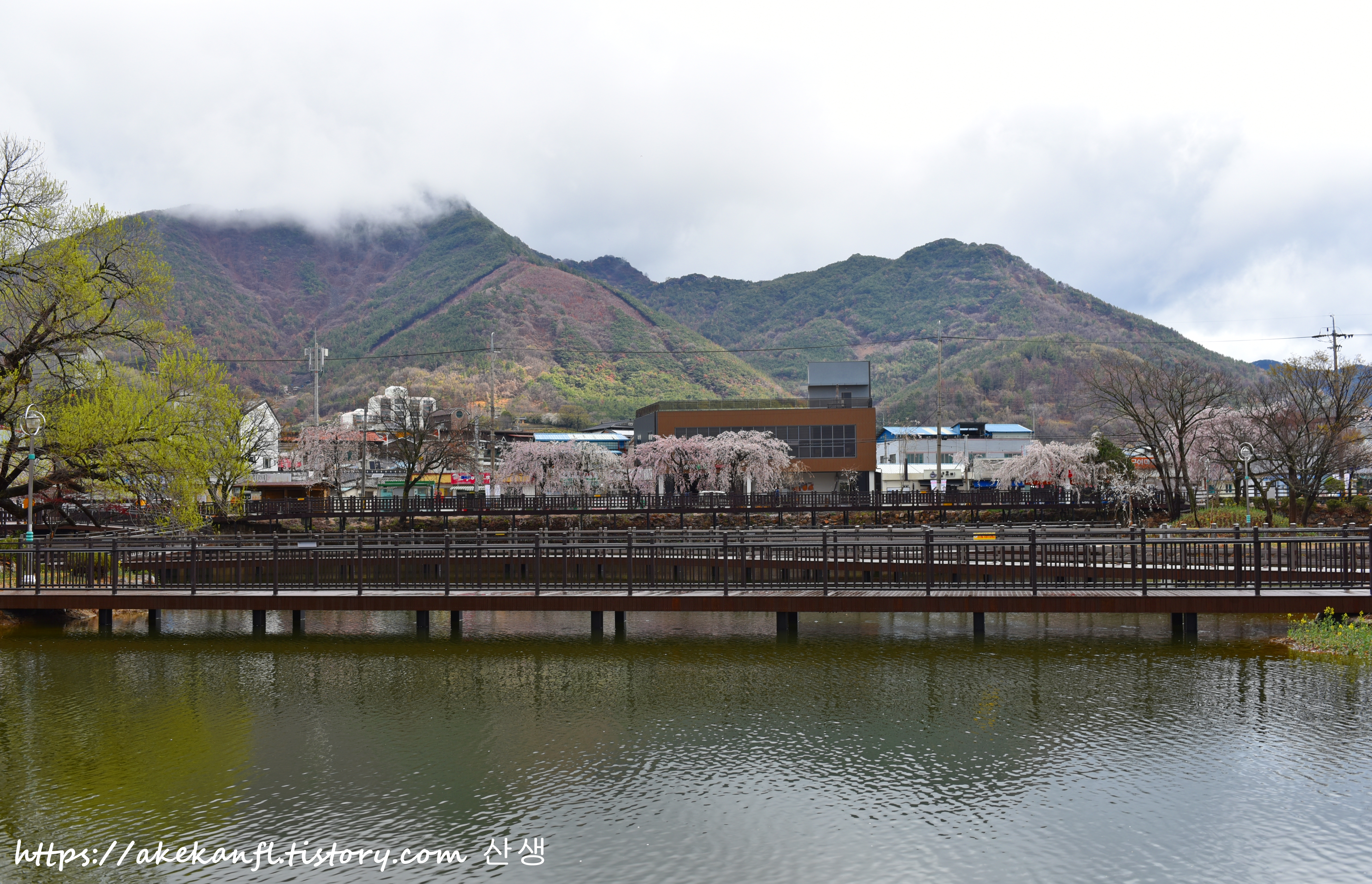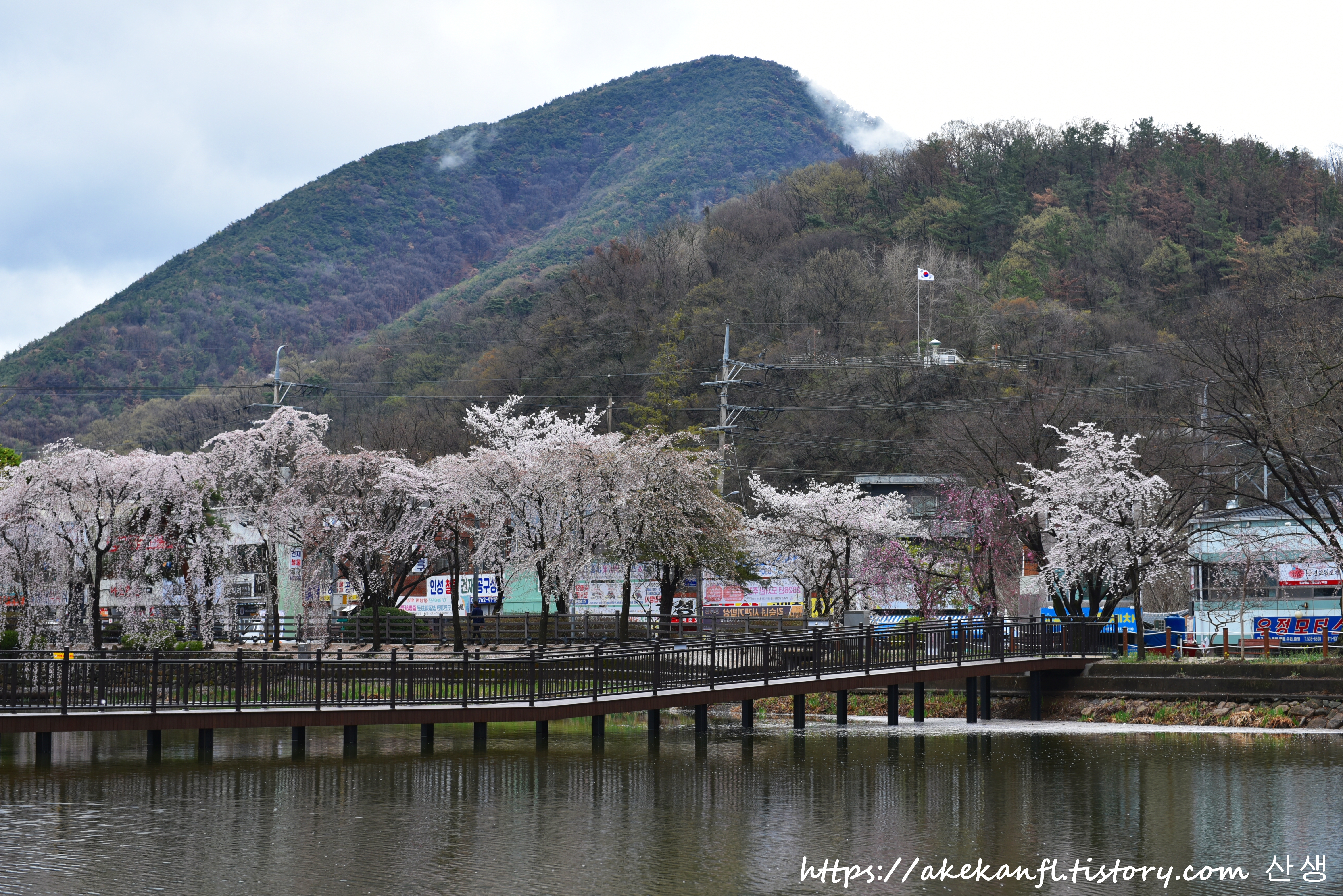 전망데크와 수양벚꽃길을 당겨 담고....