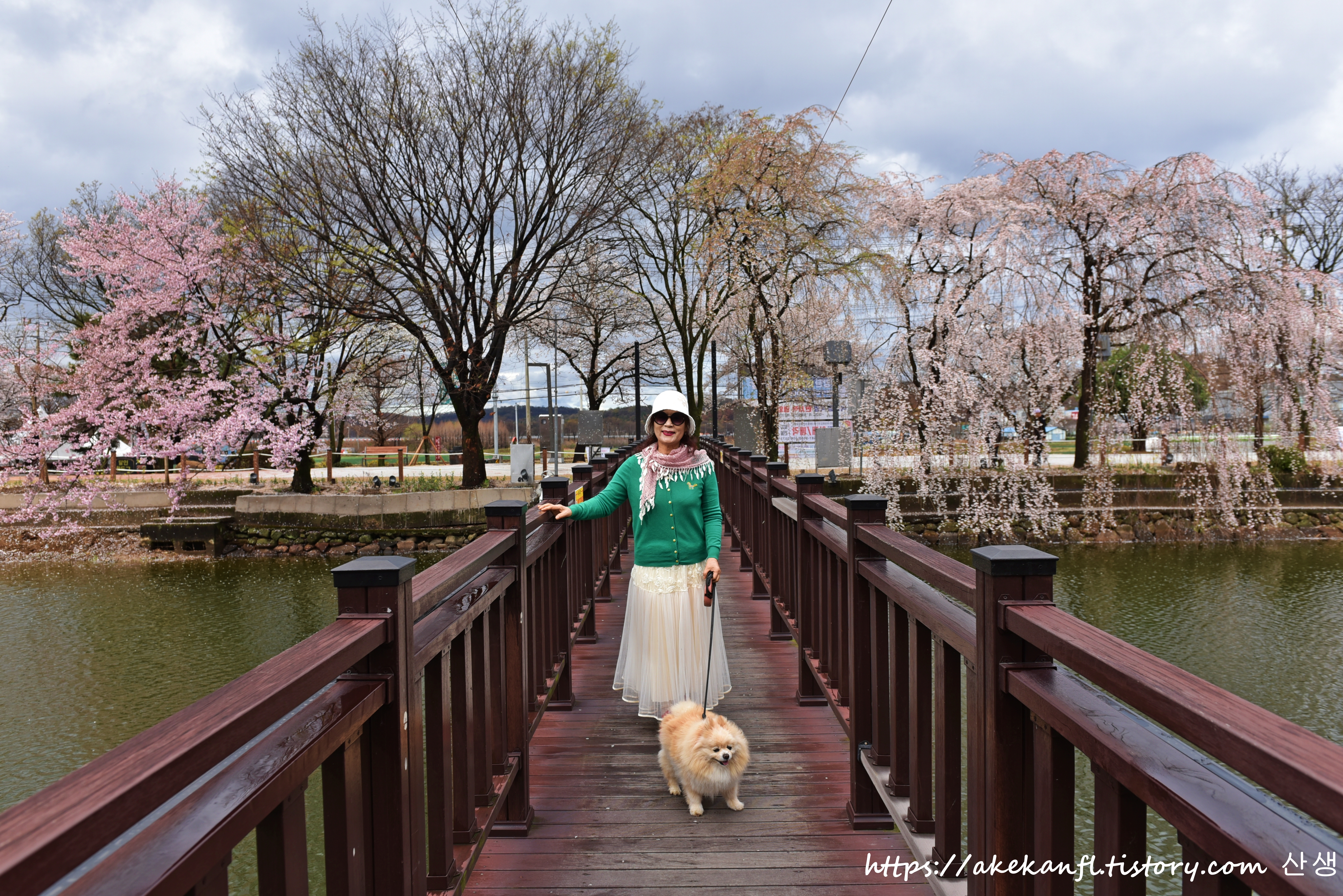 데크길 뒤로 수양벚꽃길을 당겨 담고....