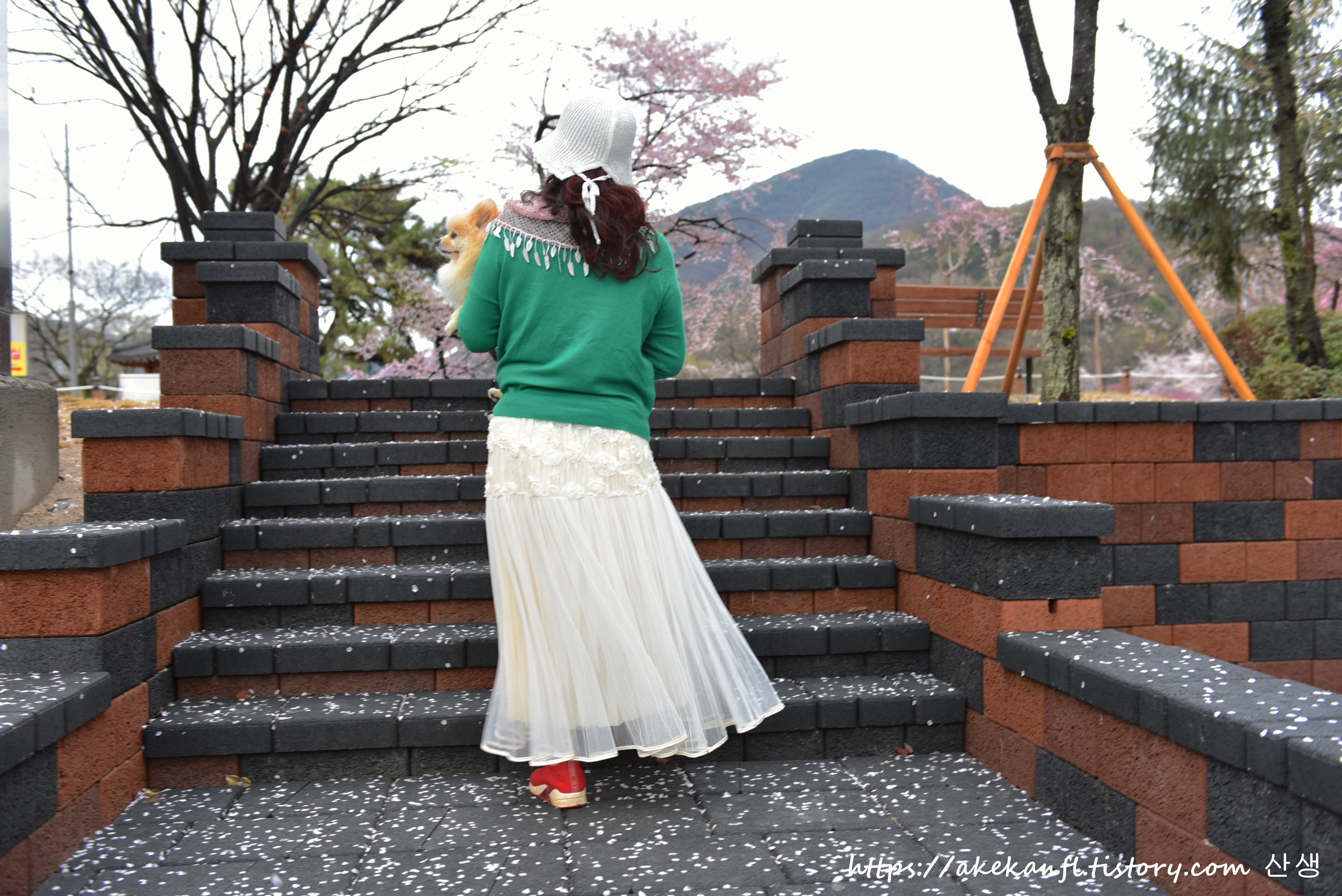 꽃비가 내리는 전망데크 쪽을 당겨 담고....
