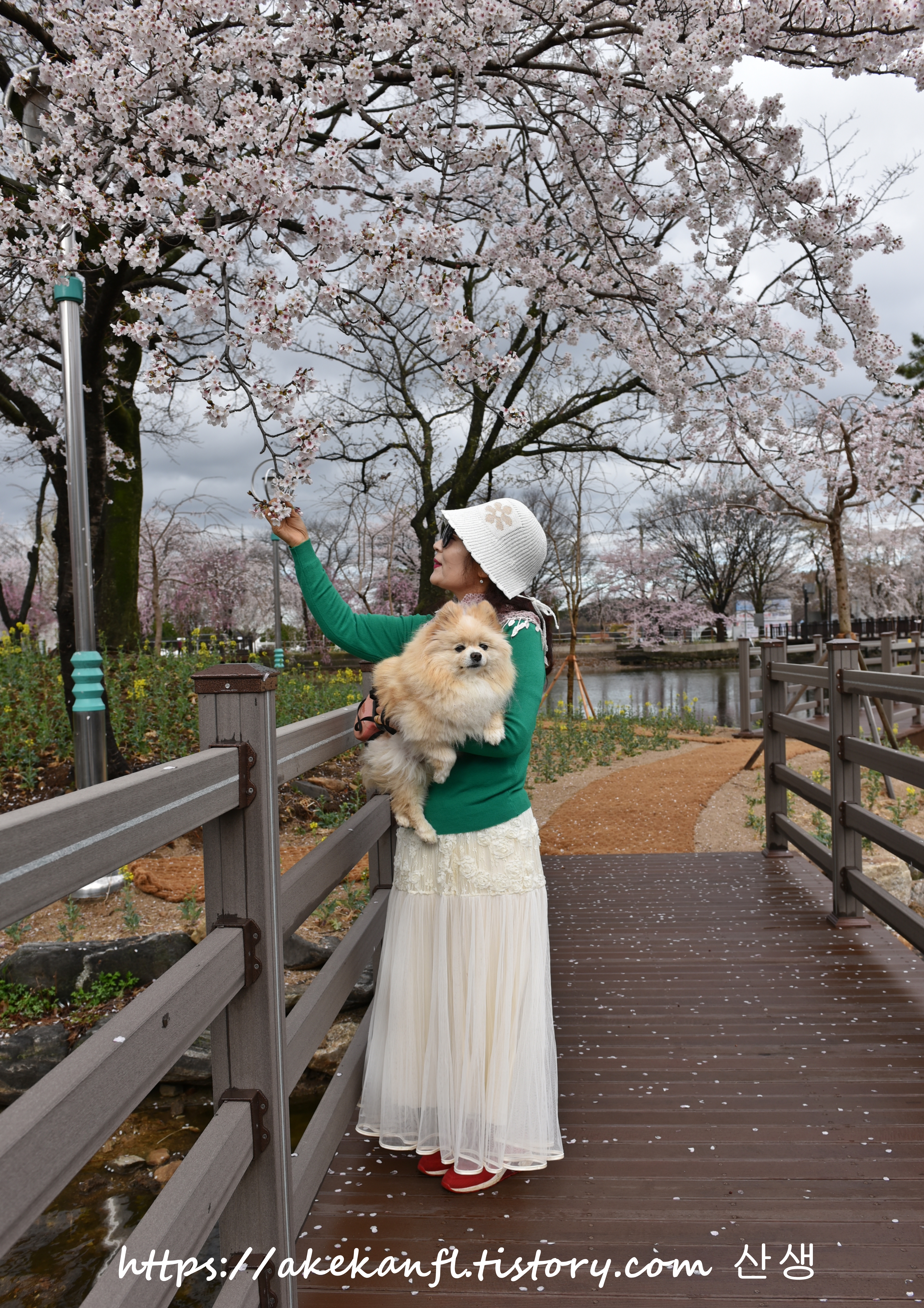 다리 위에서 기막힌 수양벚꽃을 당겨 담고...
