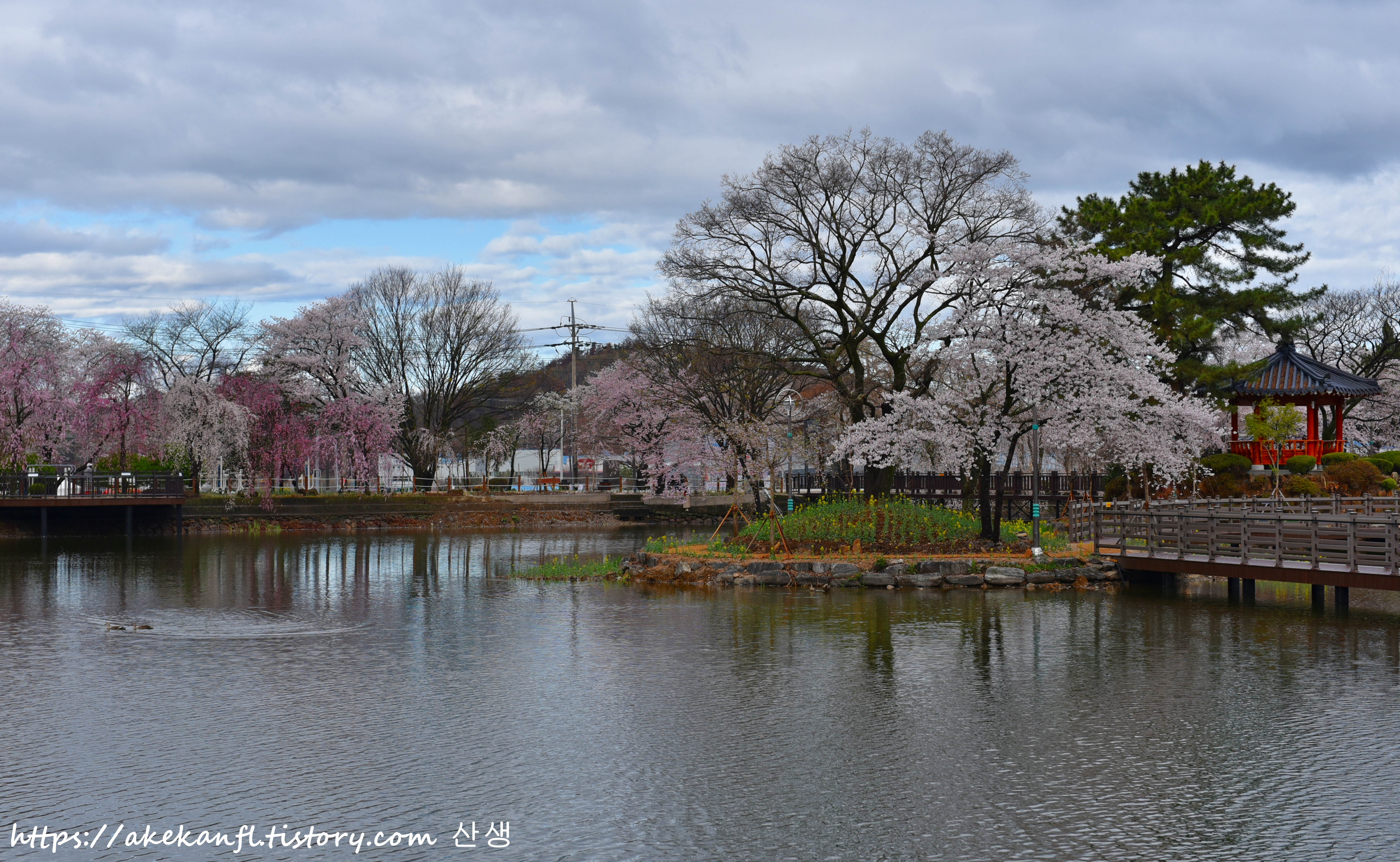연지못 수양벚꽃길 곳곳을