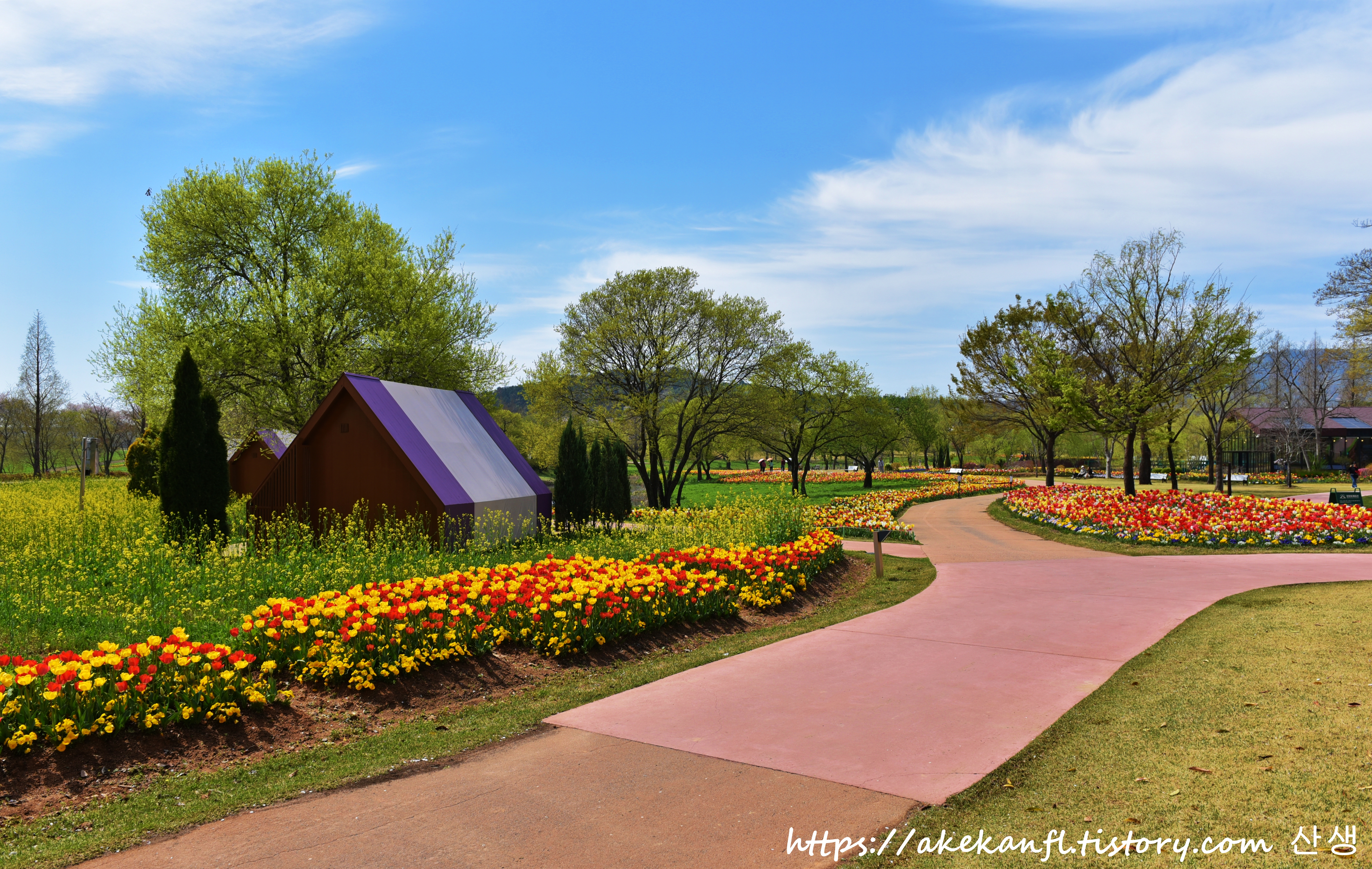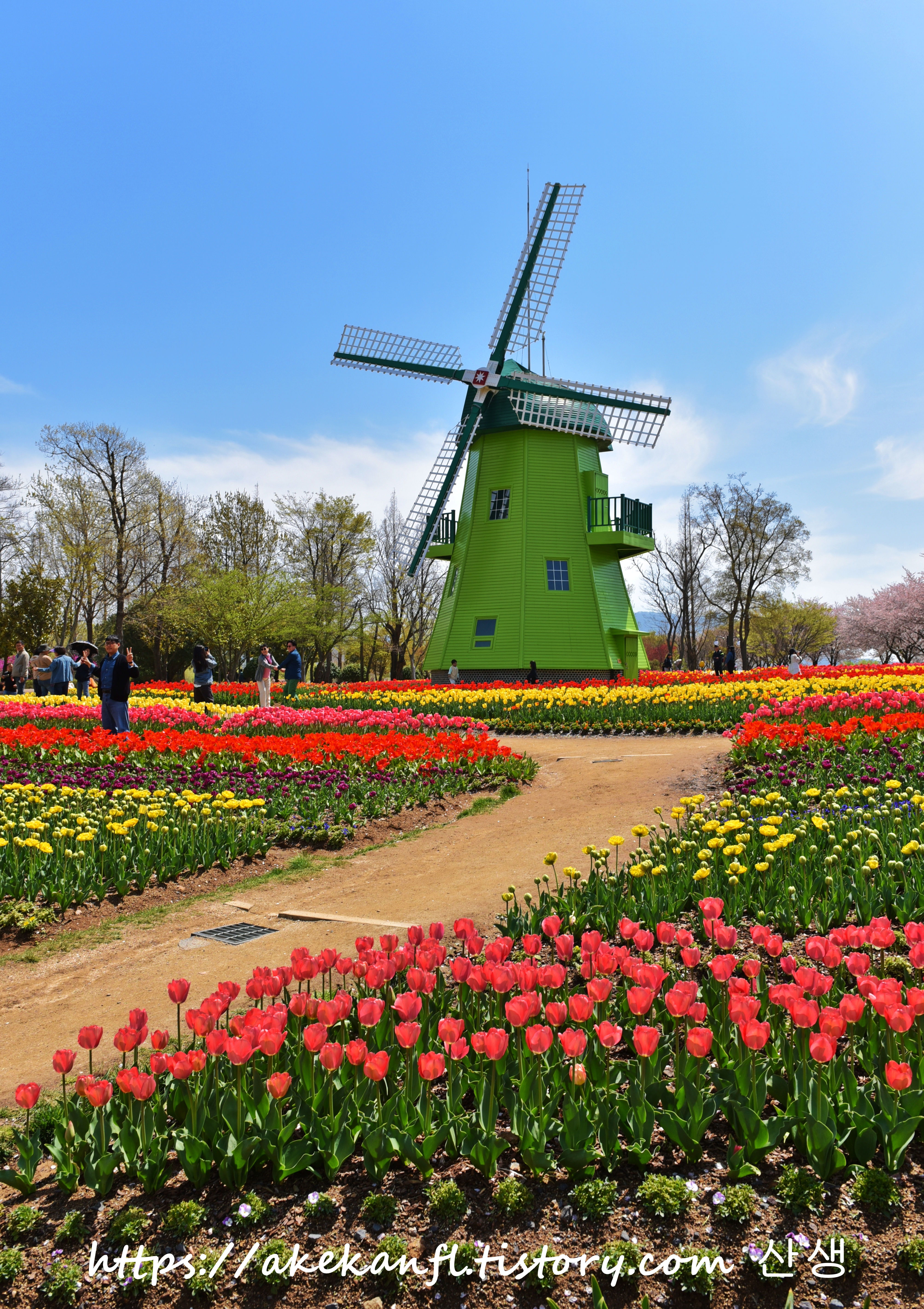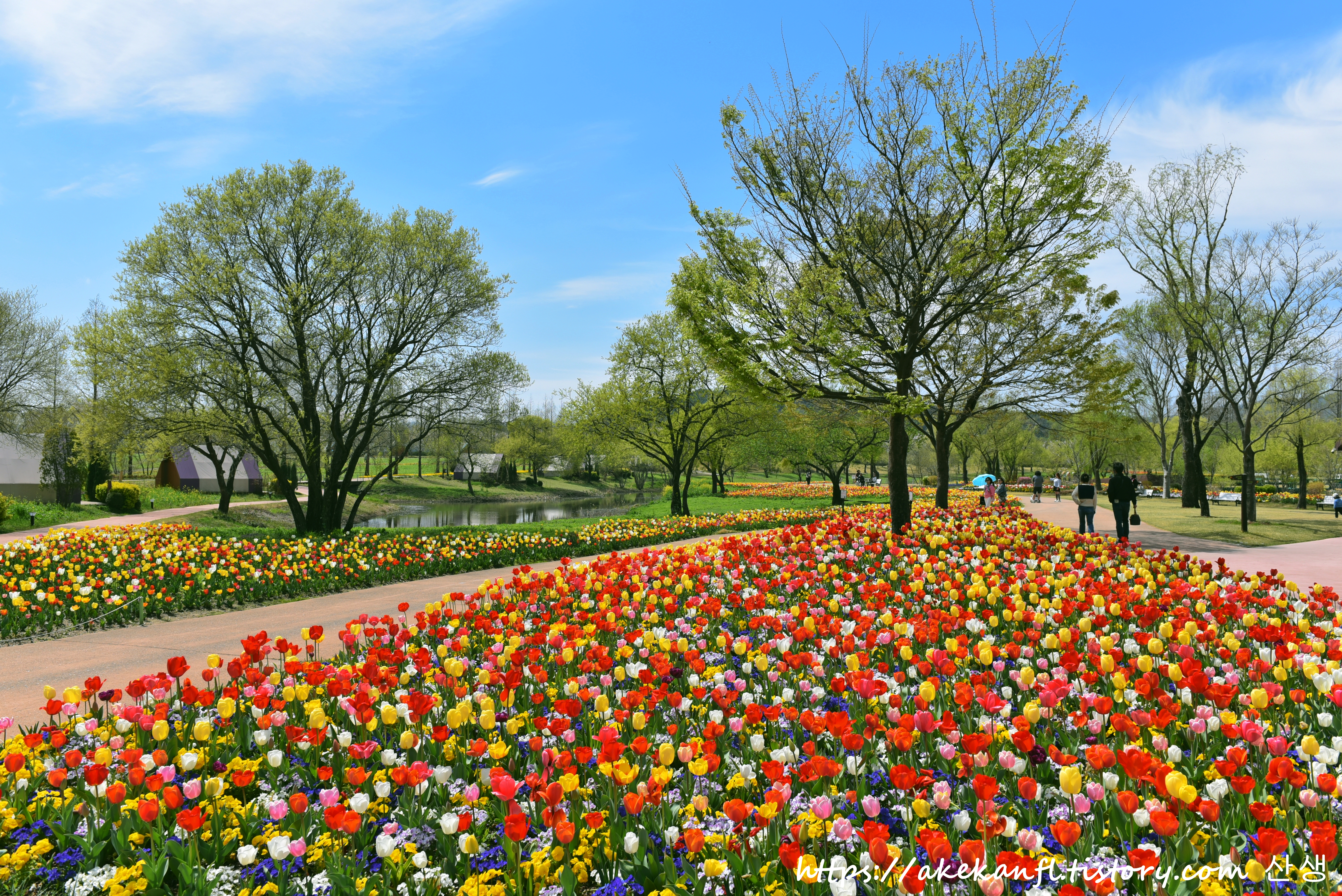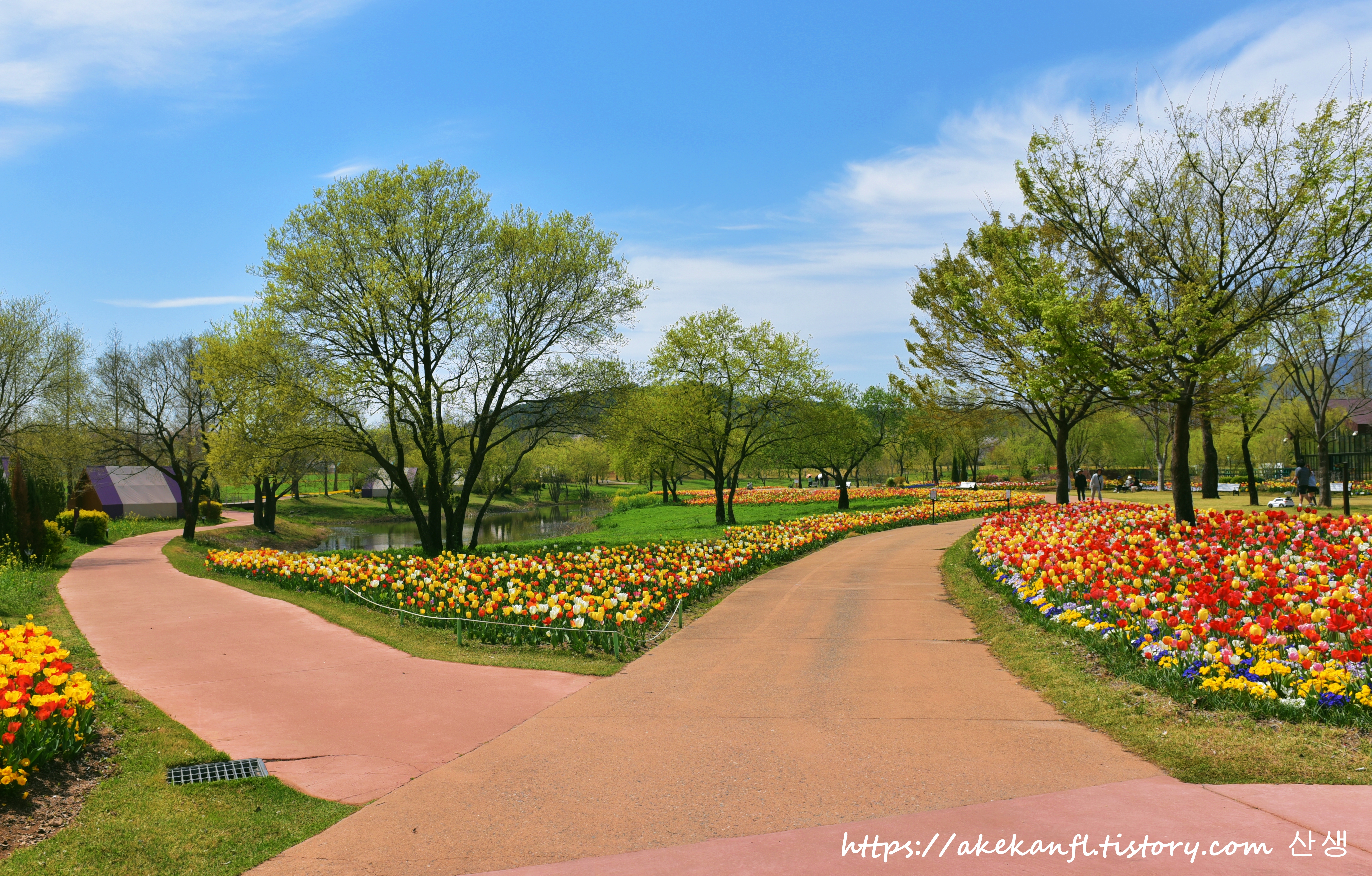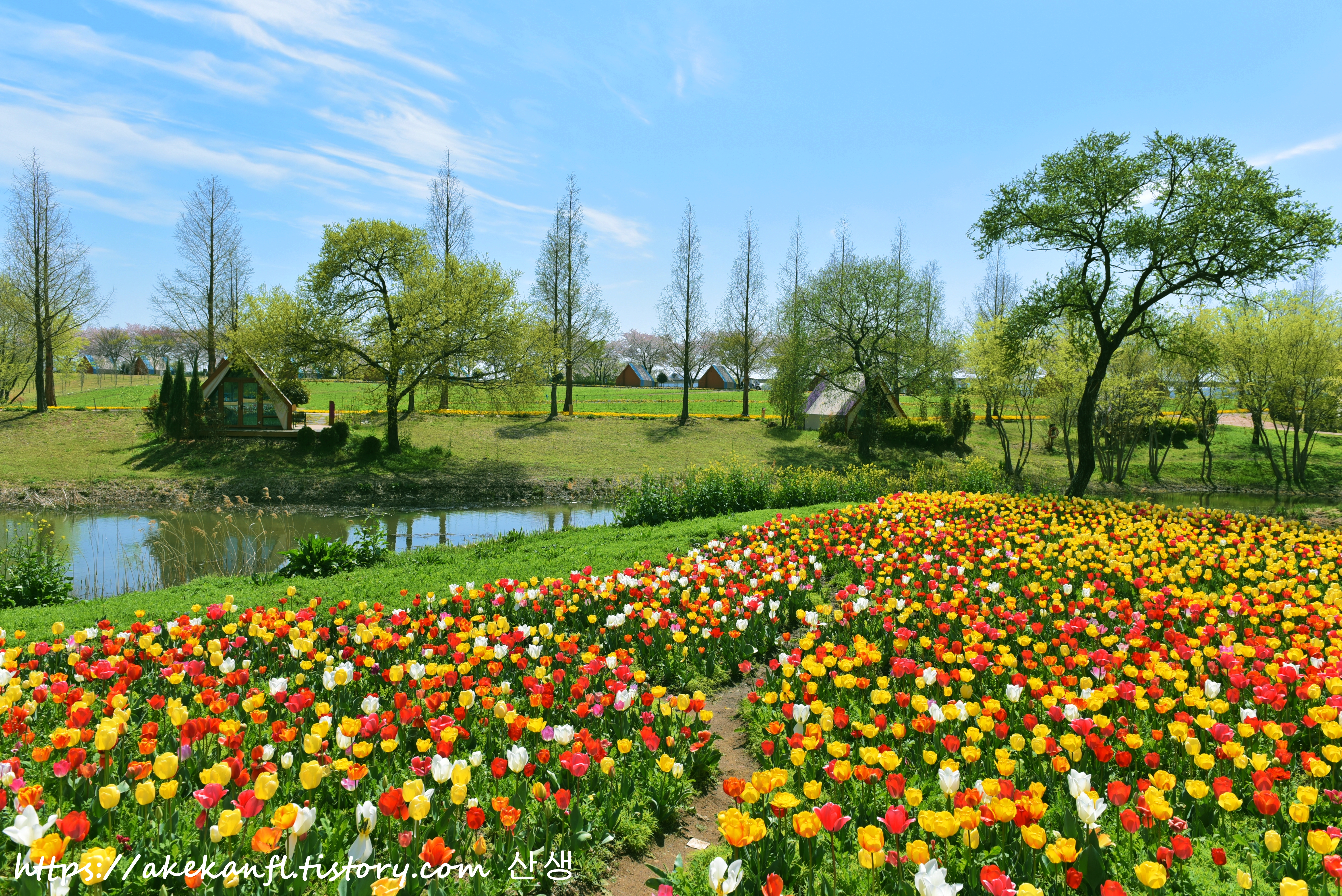 멋지게 펼쳐지는 튤립꽃밭의 풍경에