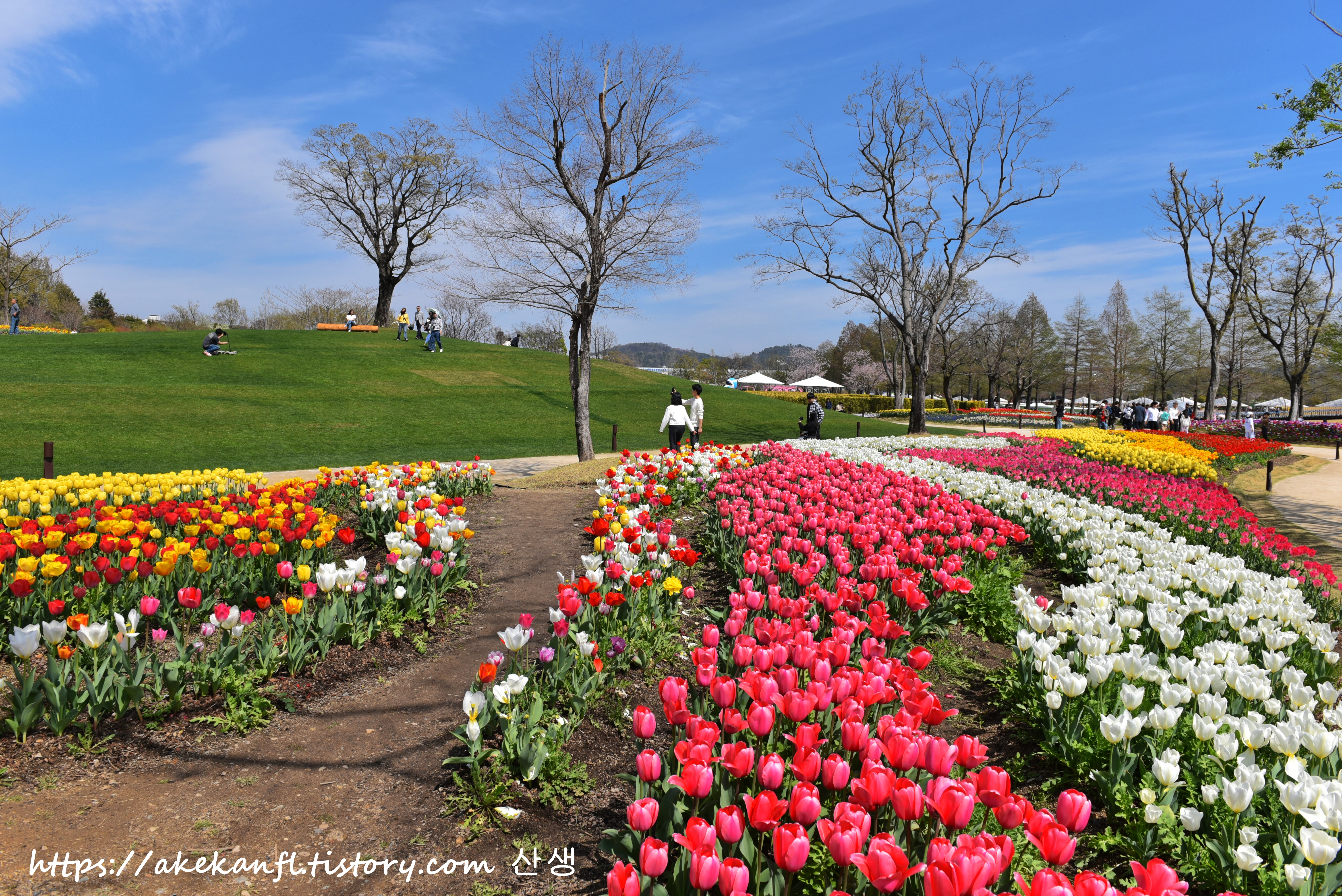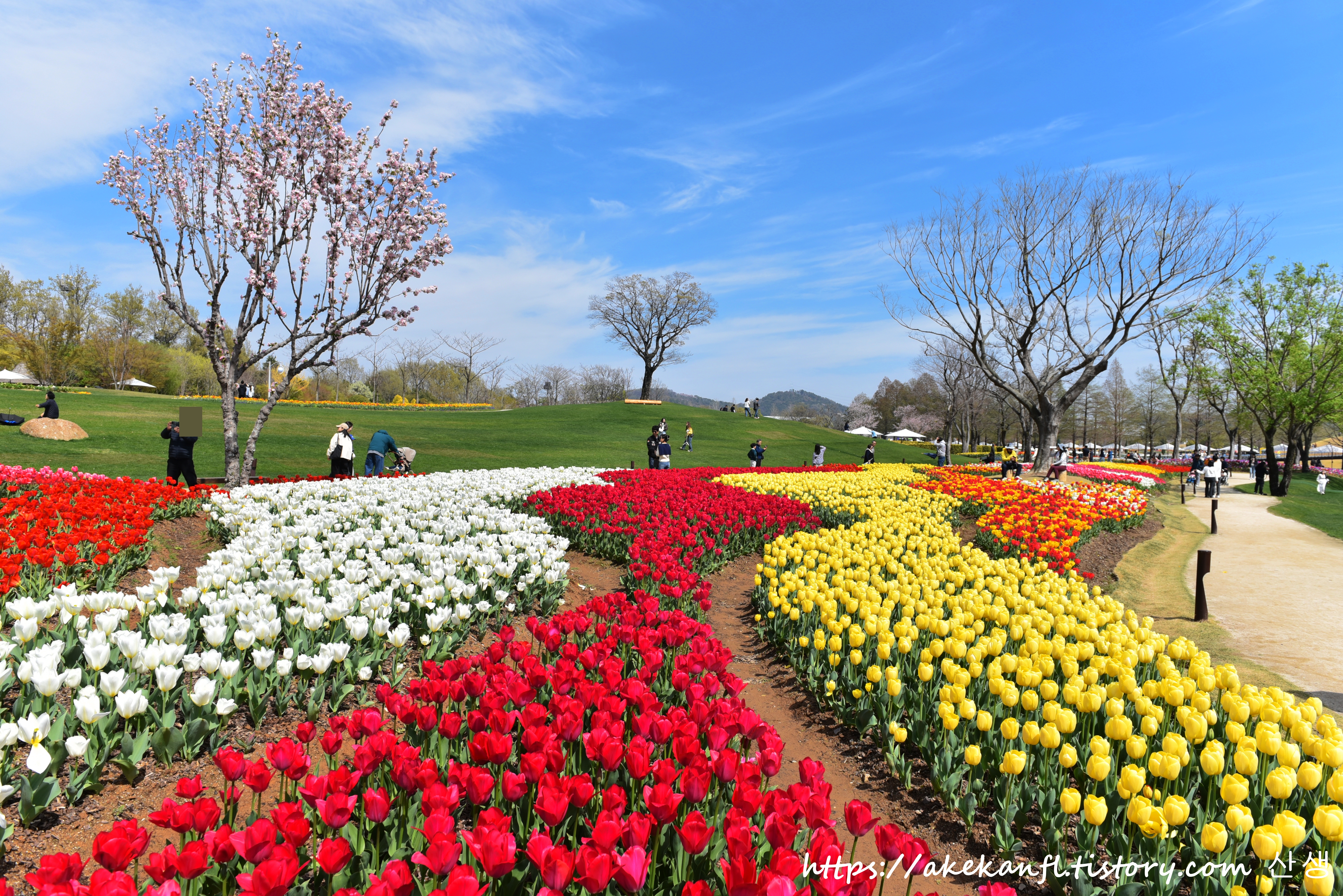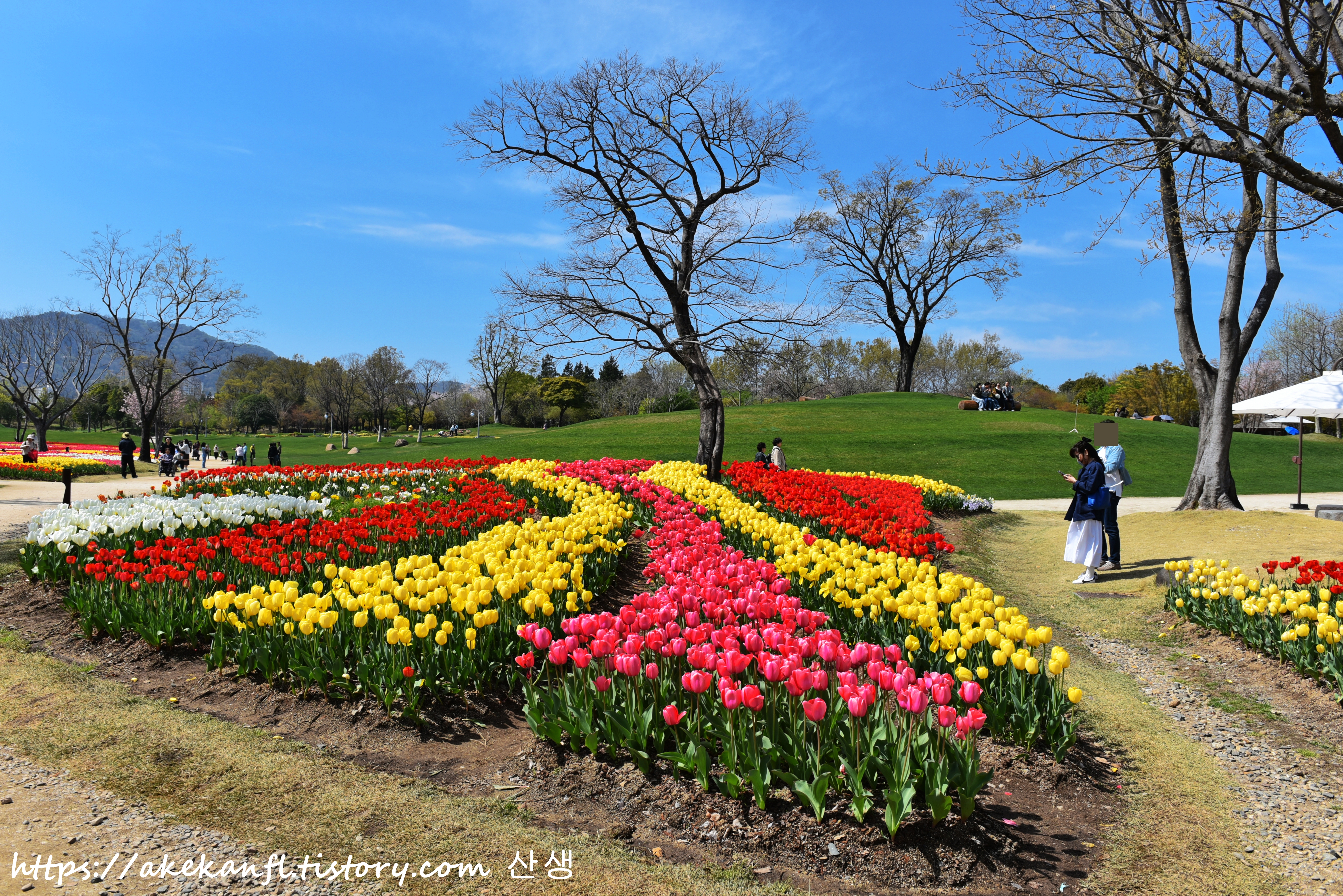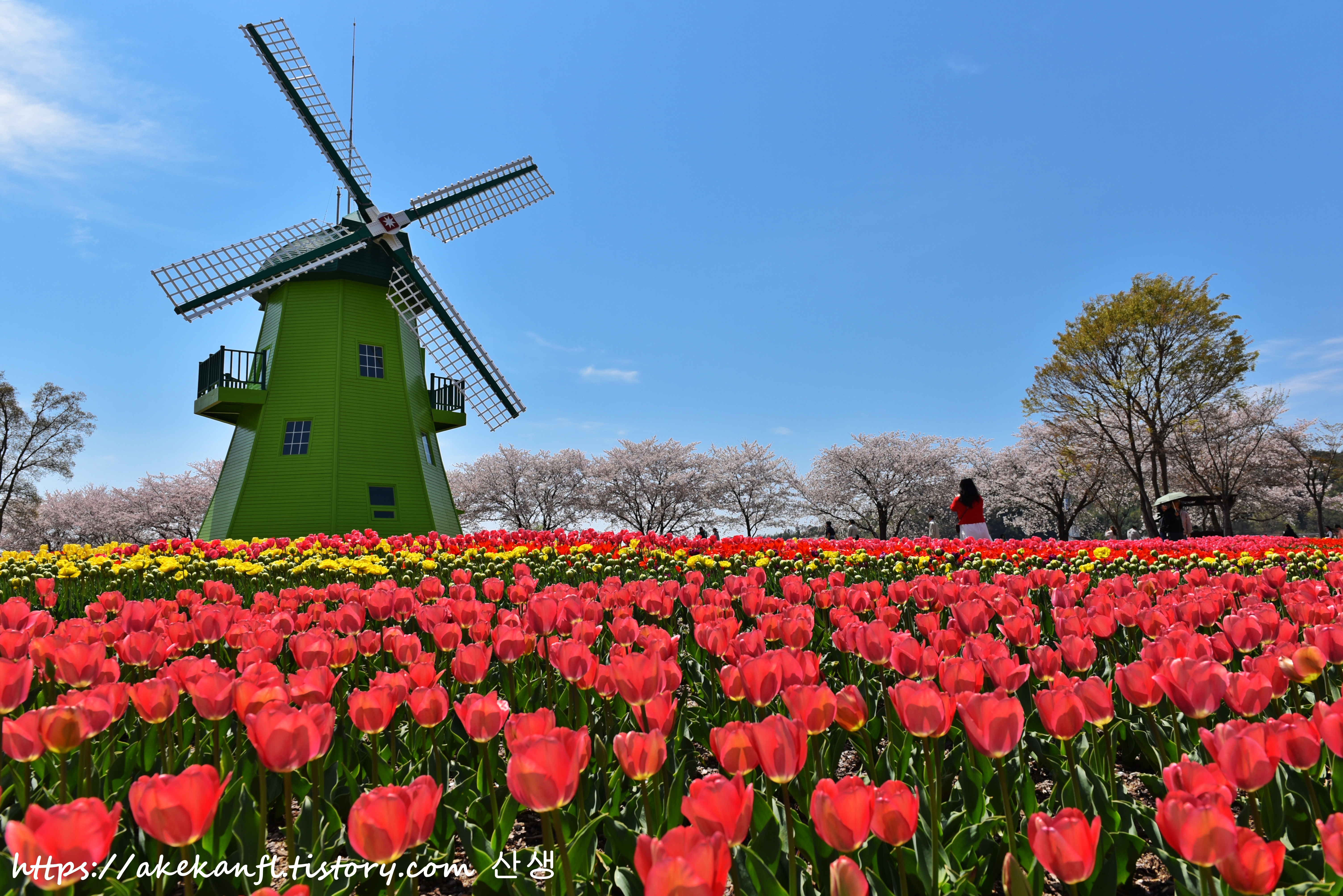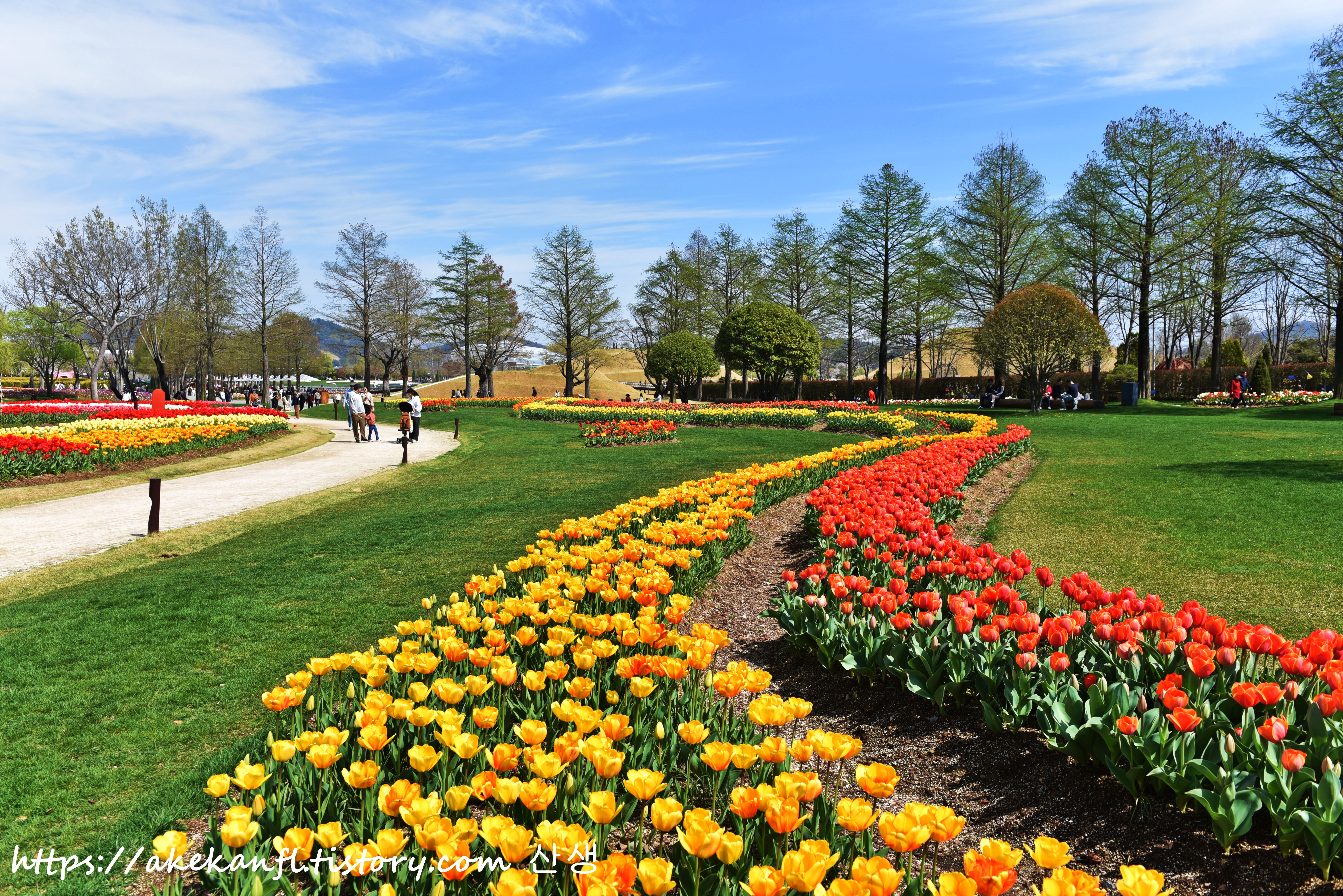 멋지게 펼쳐지는 튤립꽃밭의 풍경에