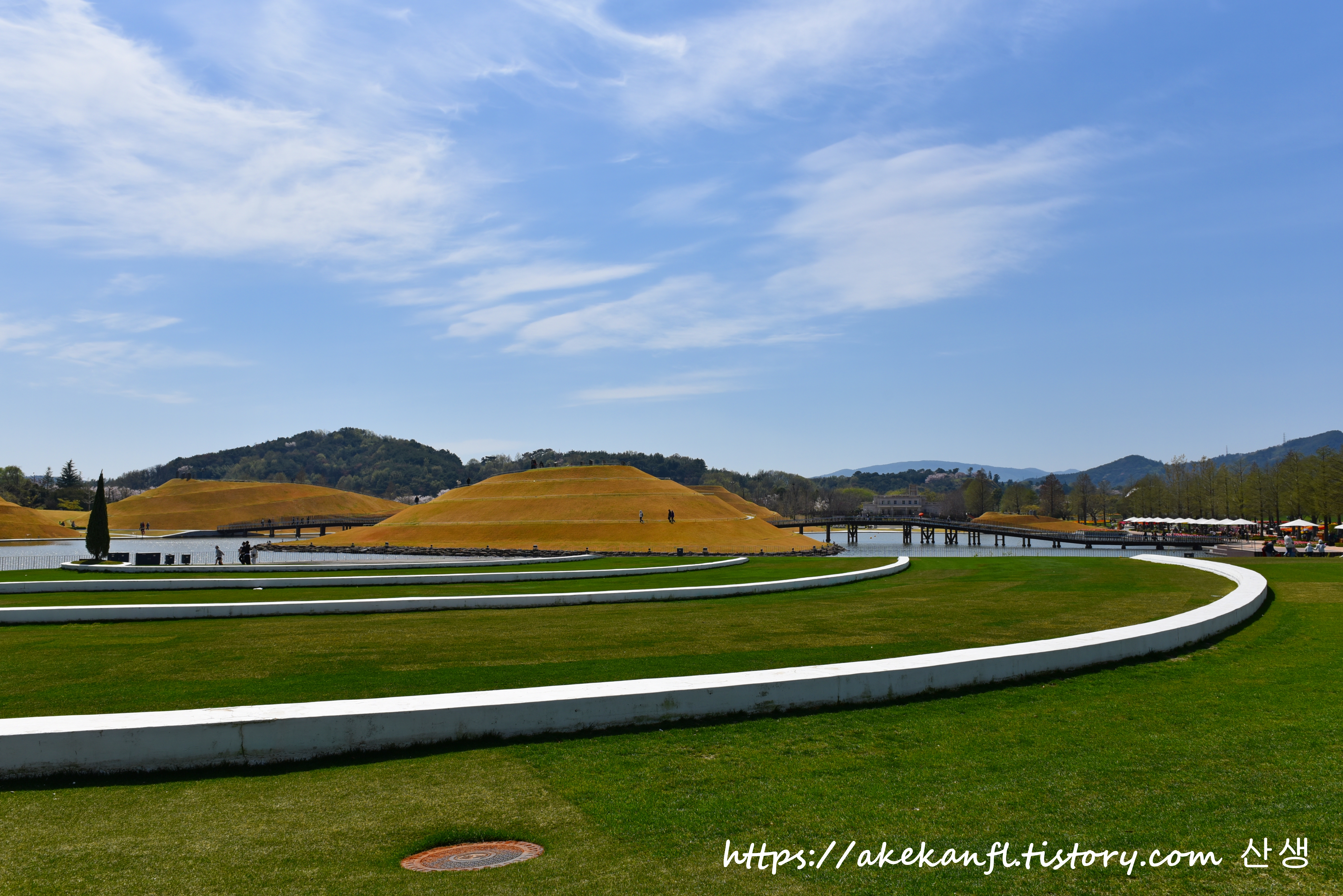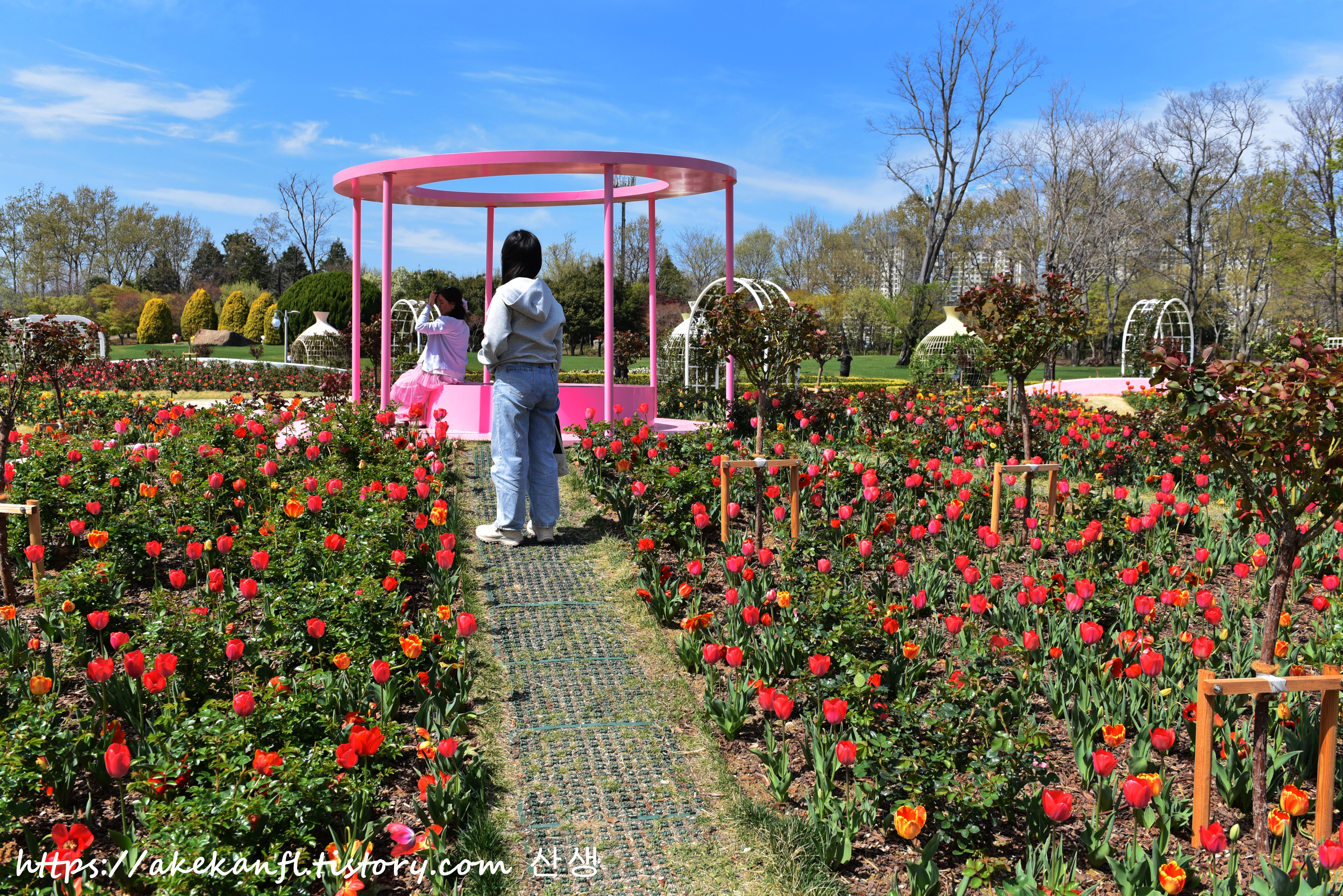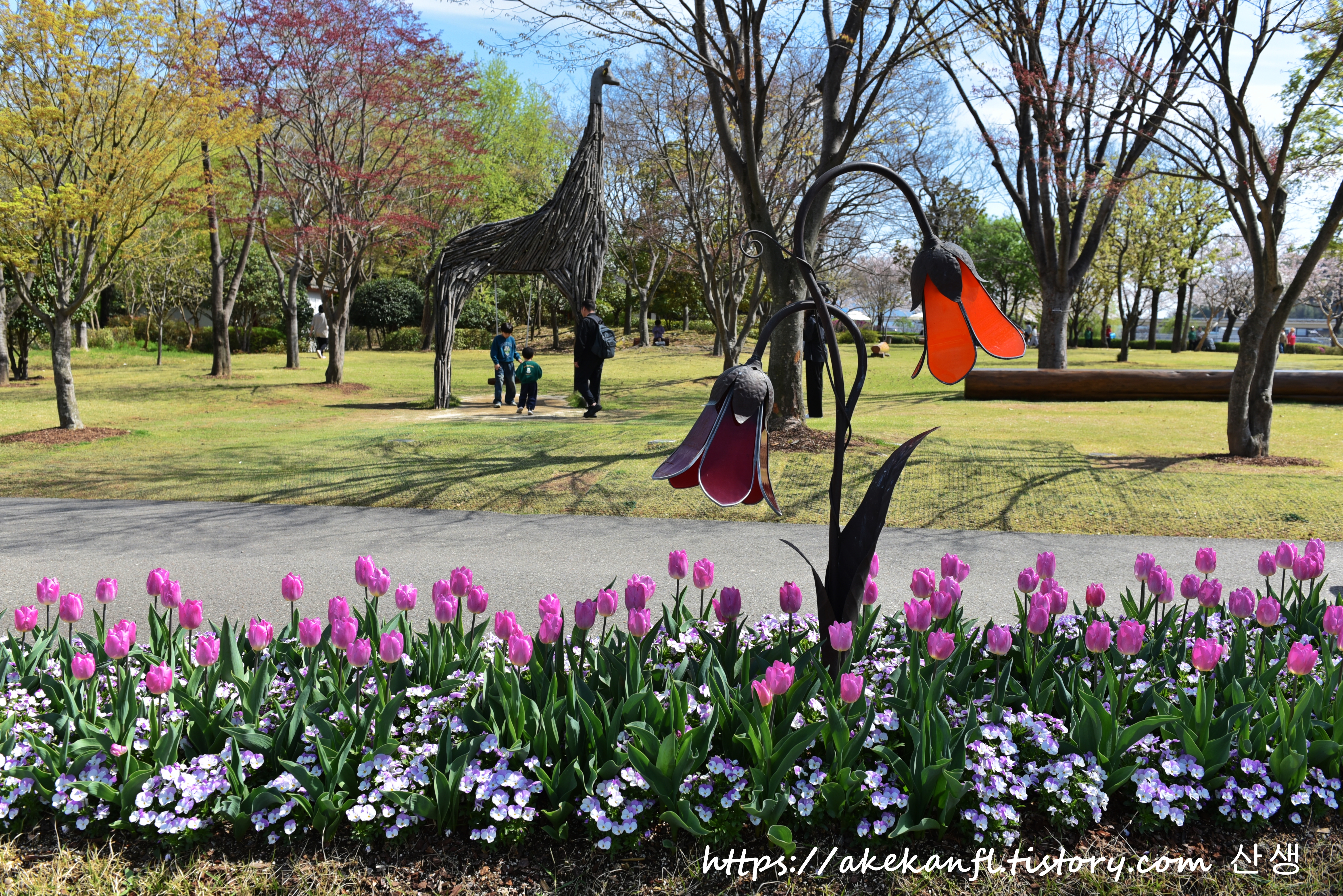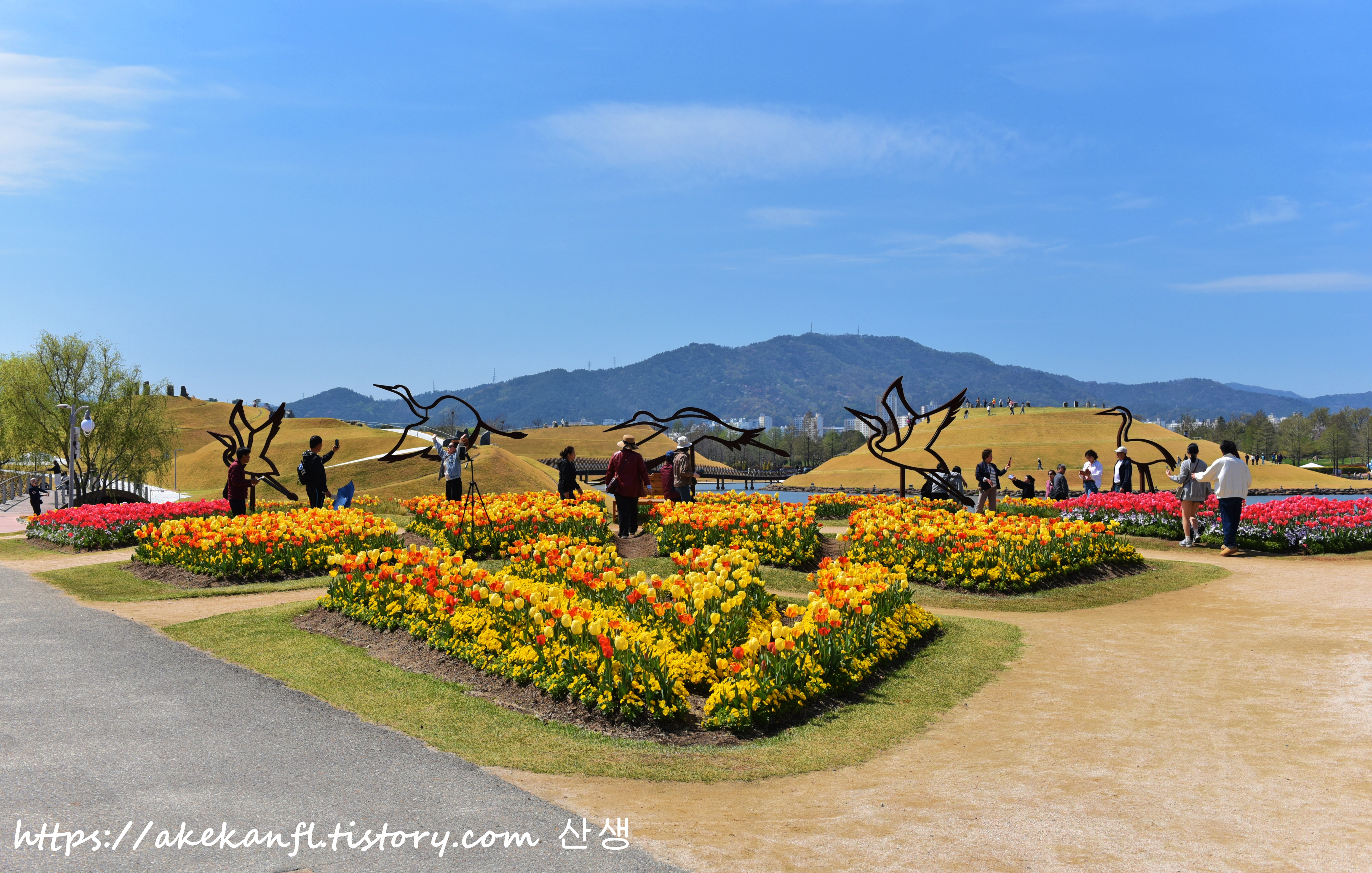 새 조형물과 멋진 튤립꽃밭을 당겨 담고.....