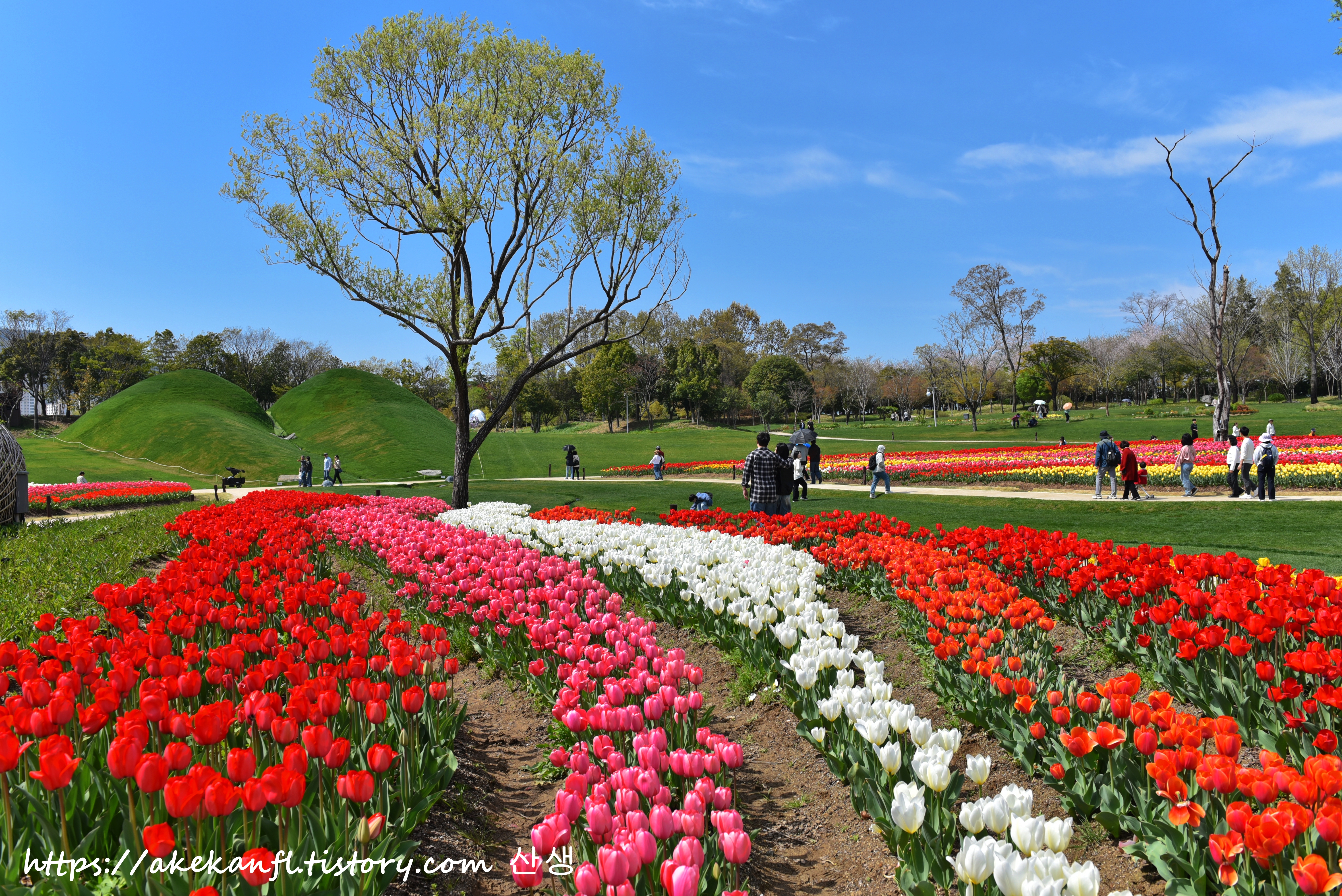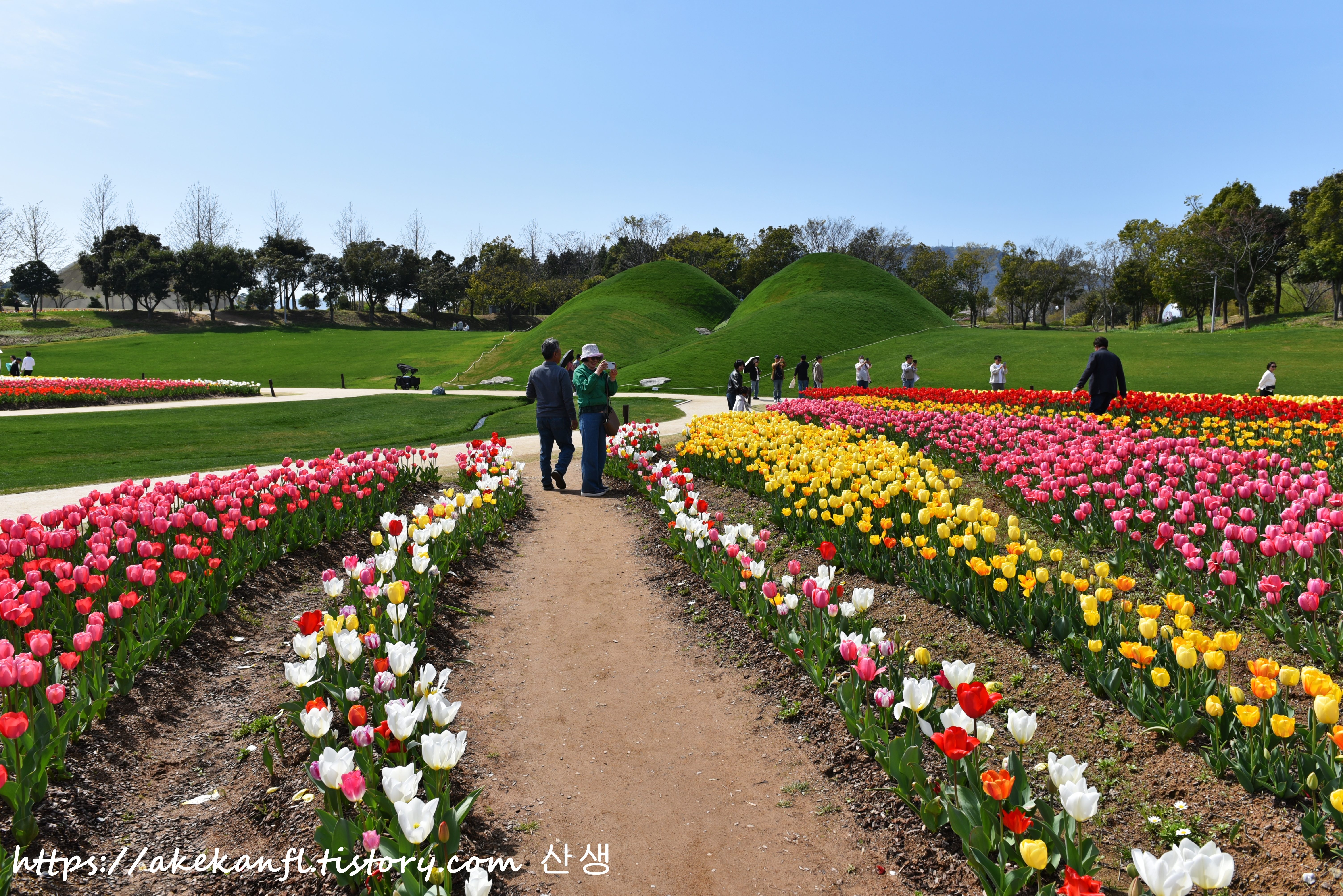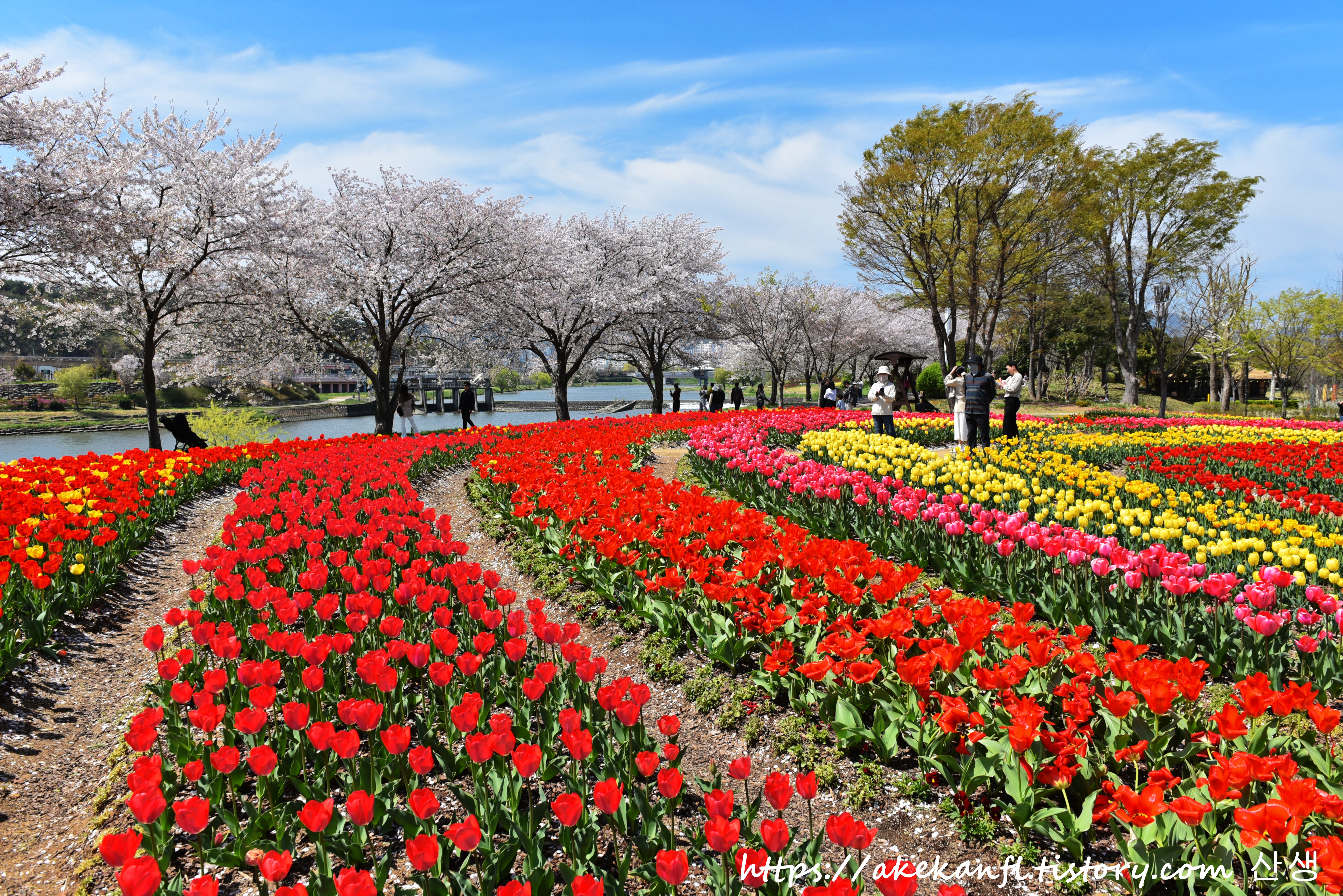 다양한 색깔로 꾸며진 튤립이 절정이다