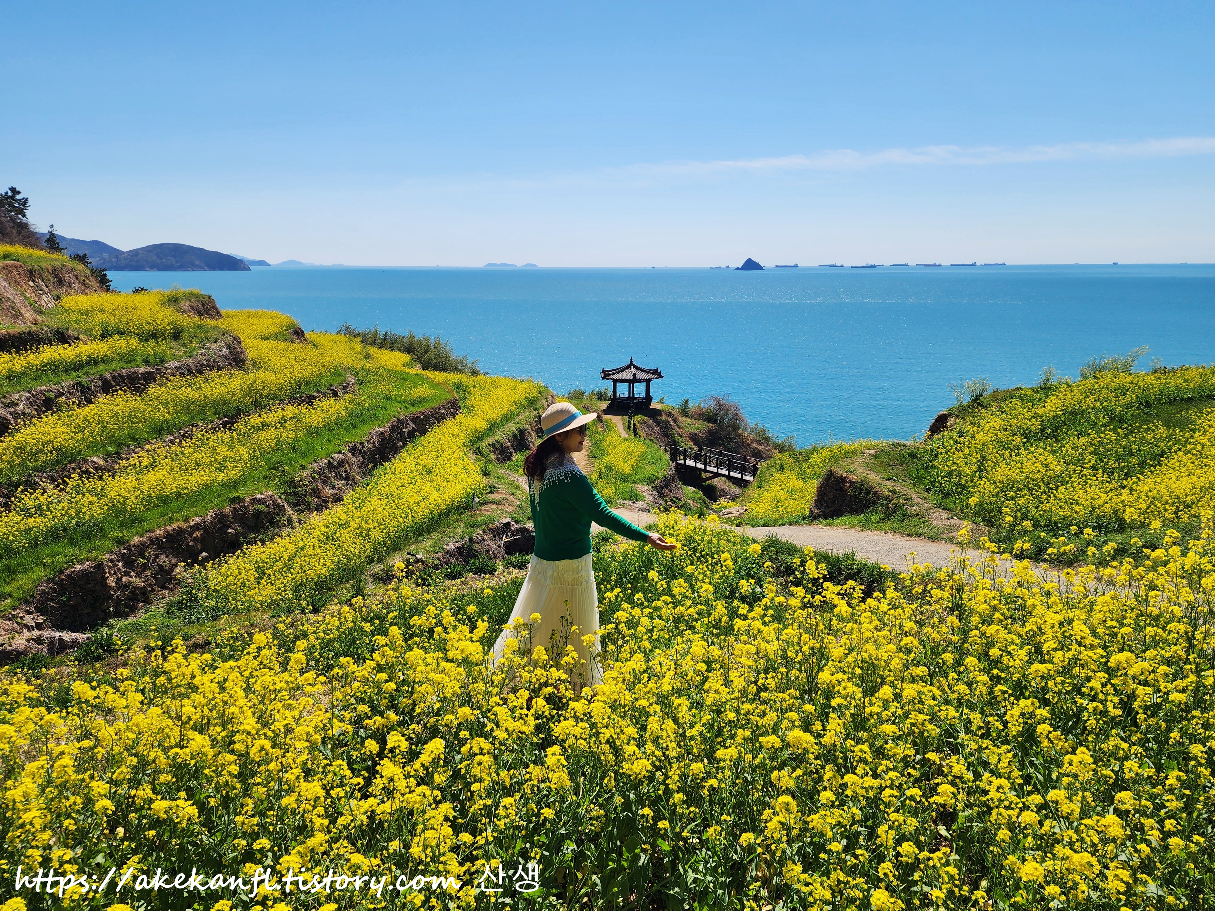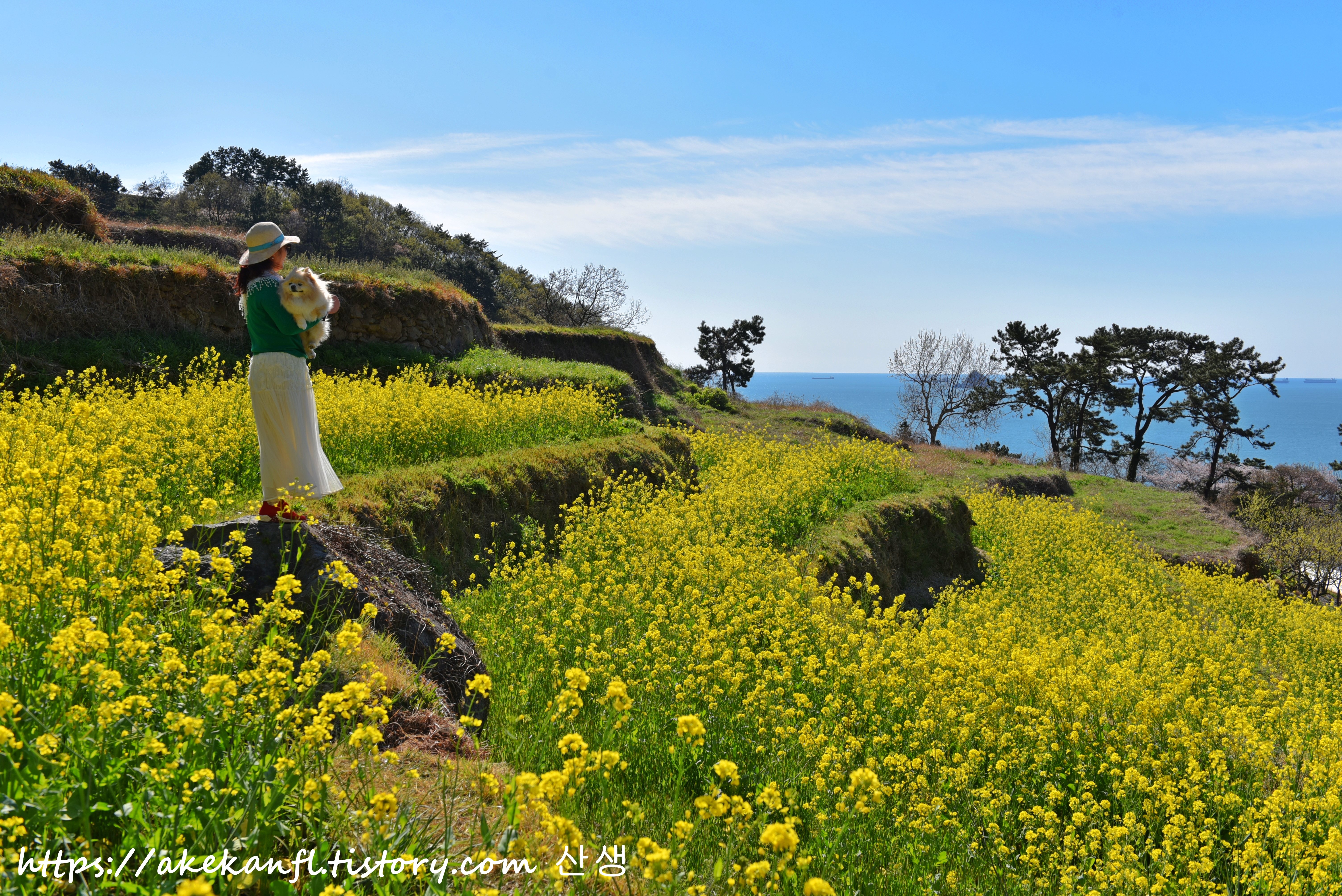 쪽빛 바다와 눈부신 유채꽃밭을 담아봄