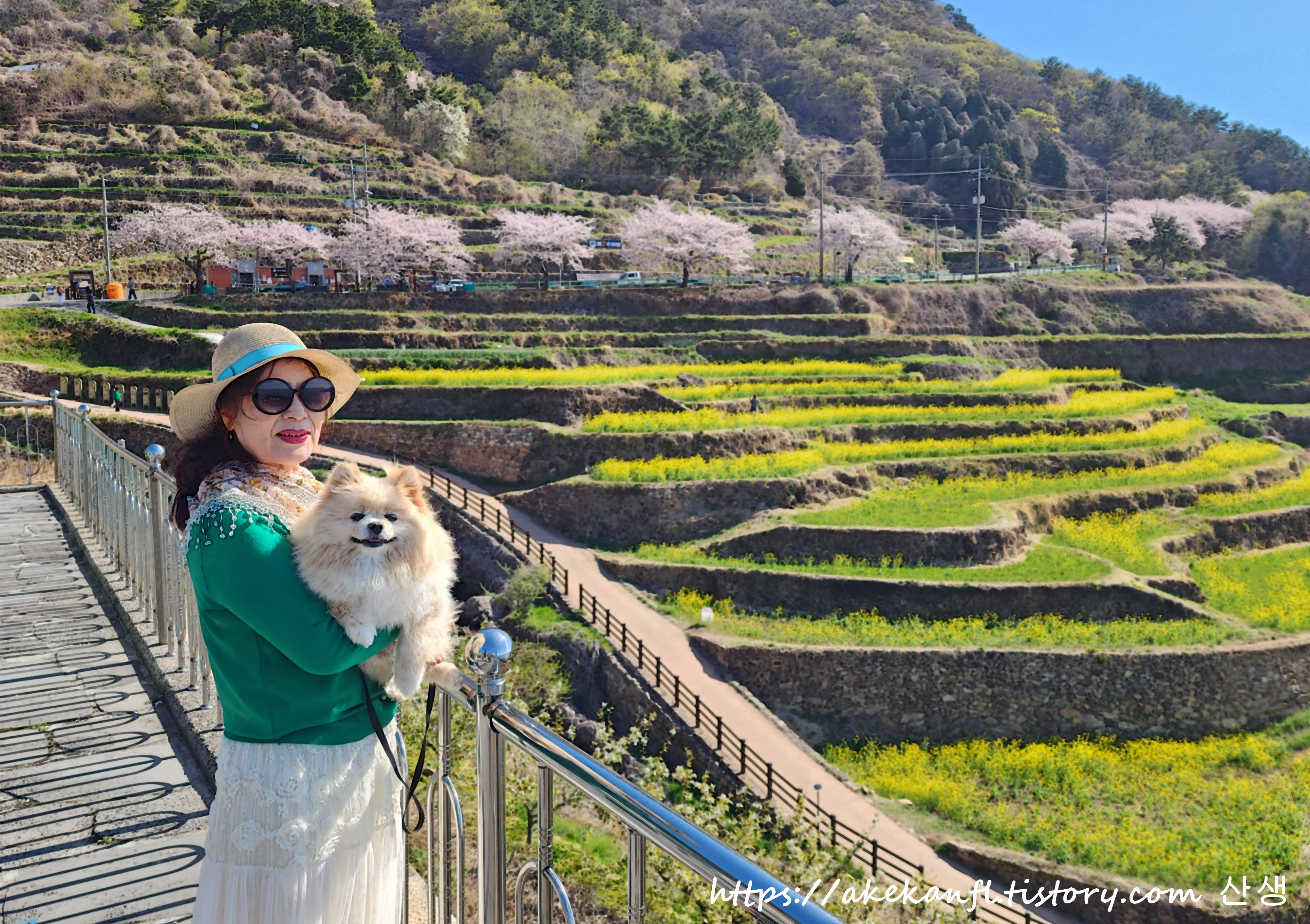 절정인 다랭이 유채꽃밭을 당겨 담고....