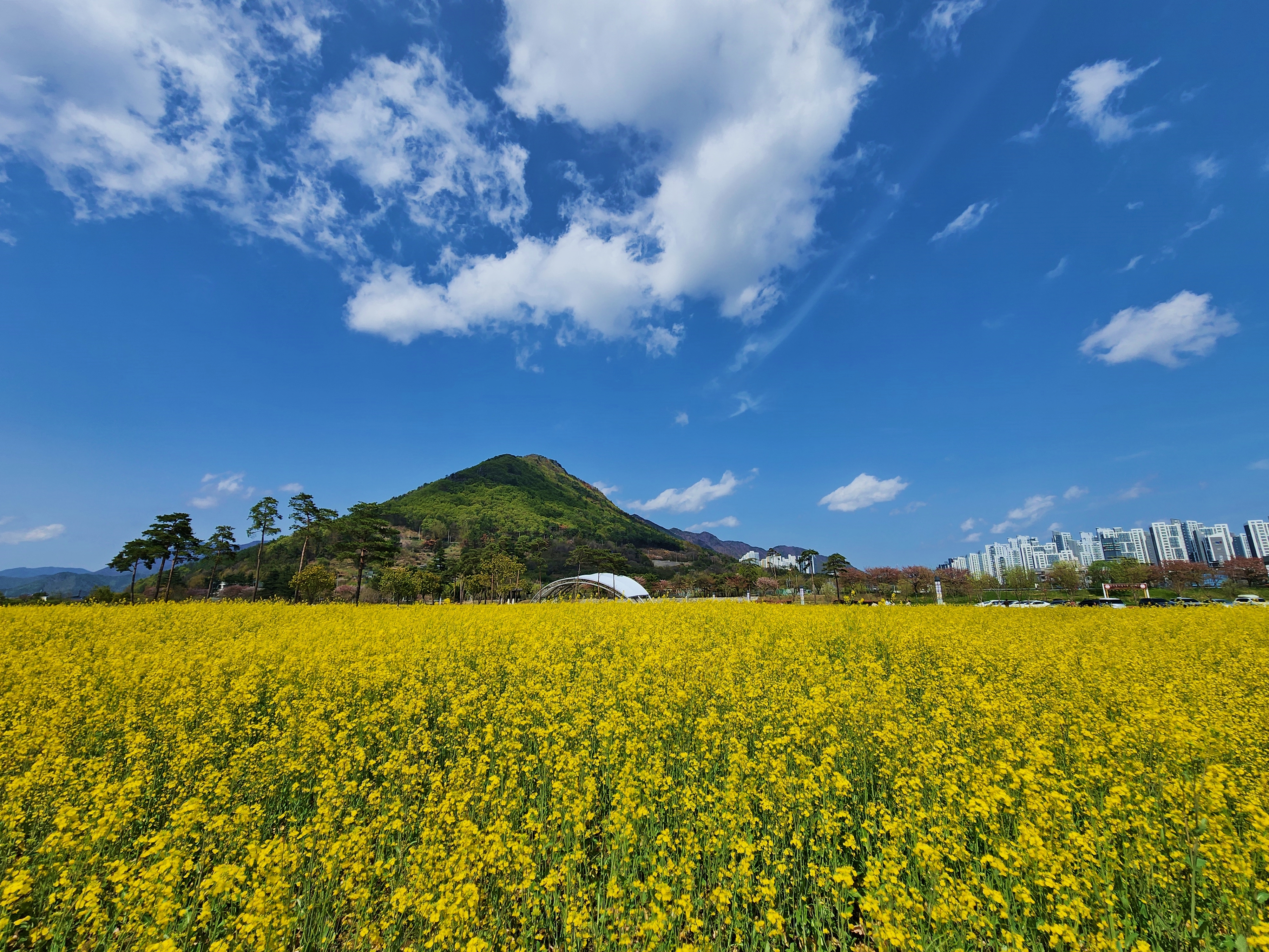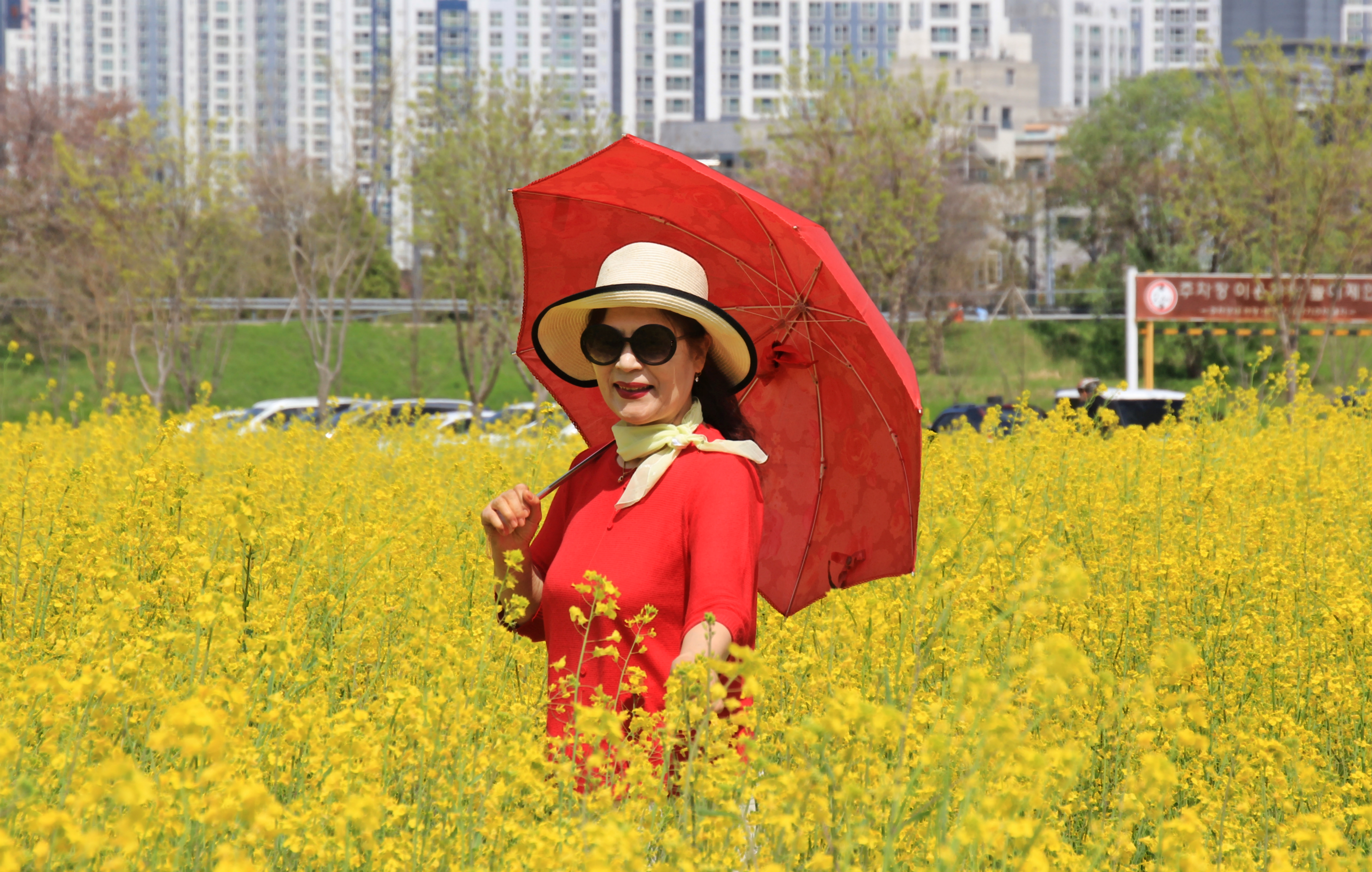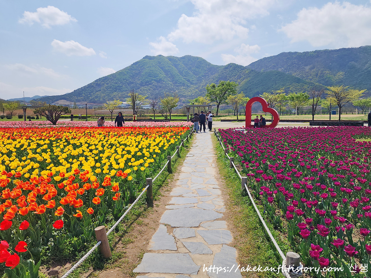 꽃밭 곳곳에는 상춘객들이 붐벼